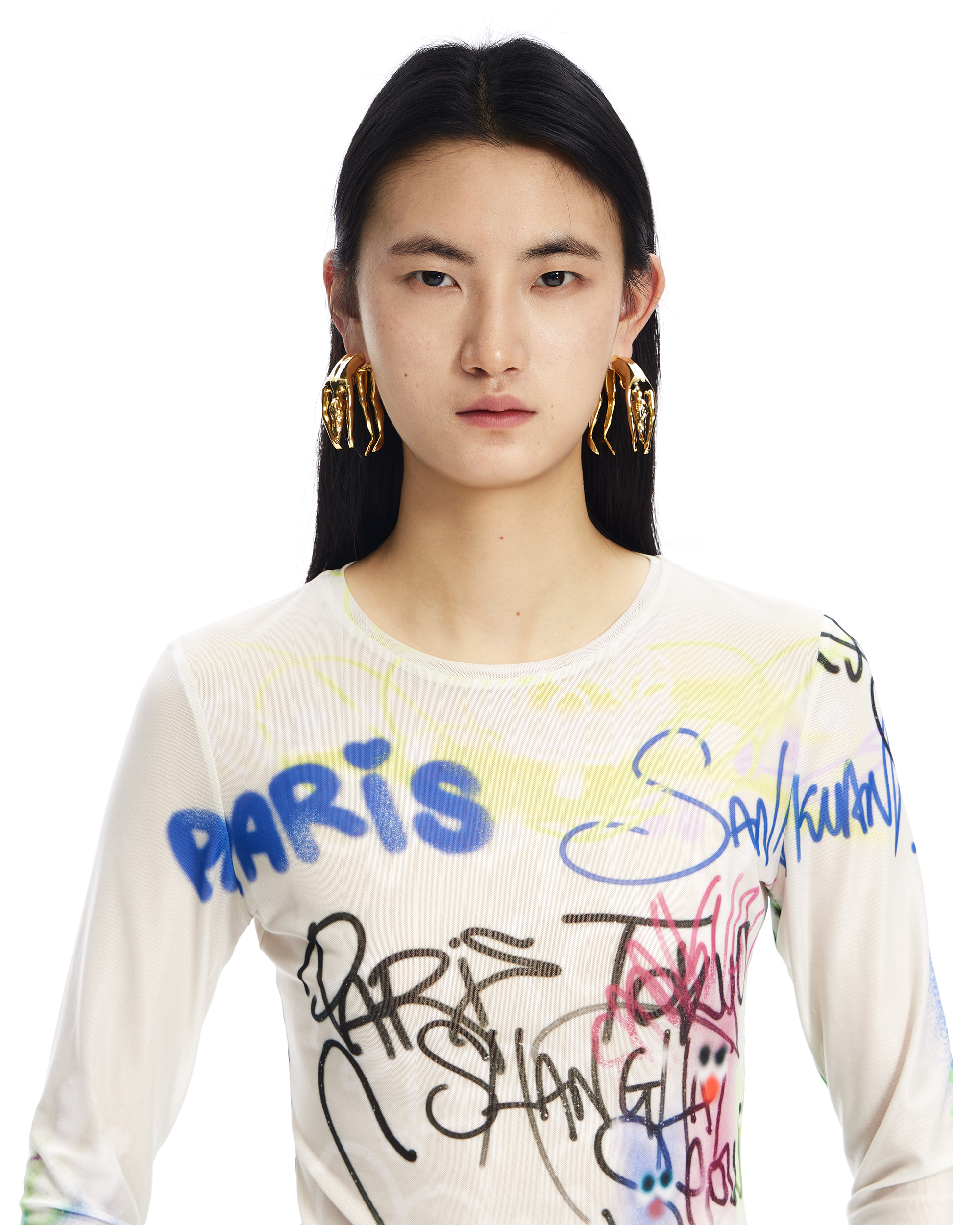 WOMAN BODY METAL SPLIT EARRINGS