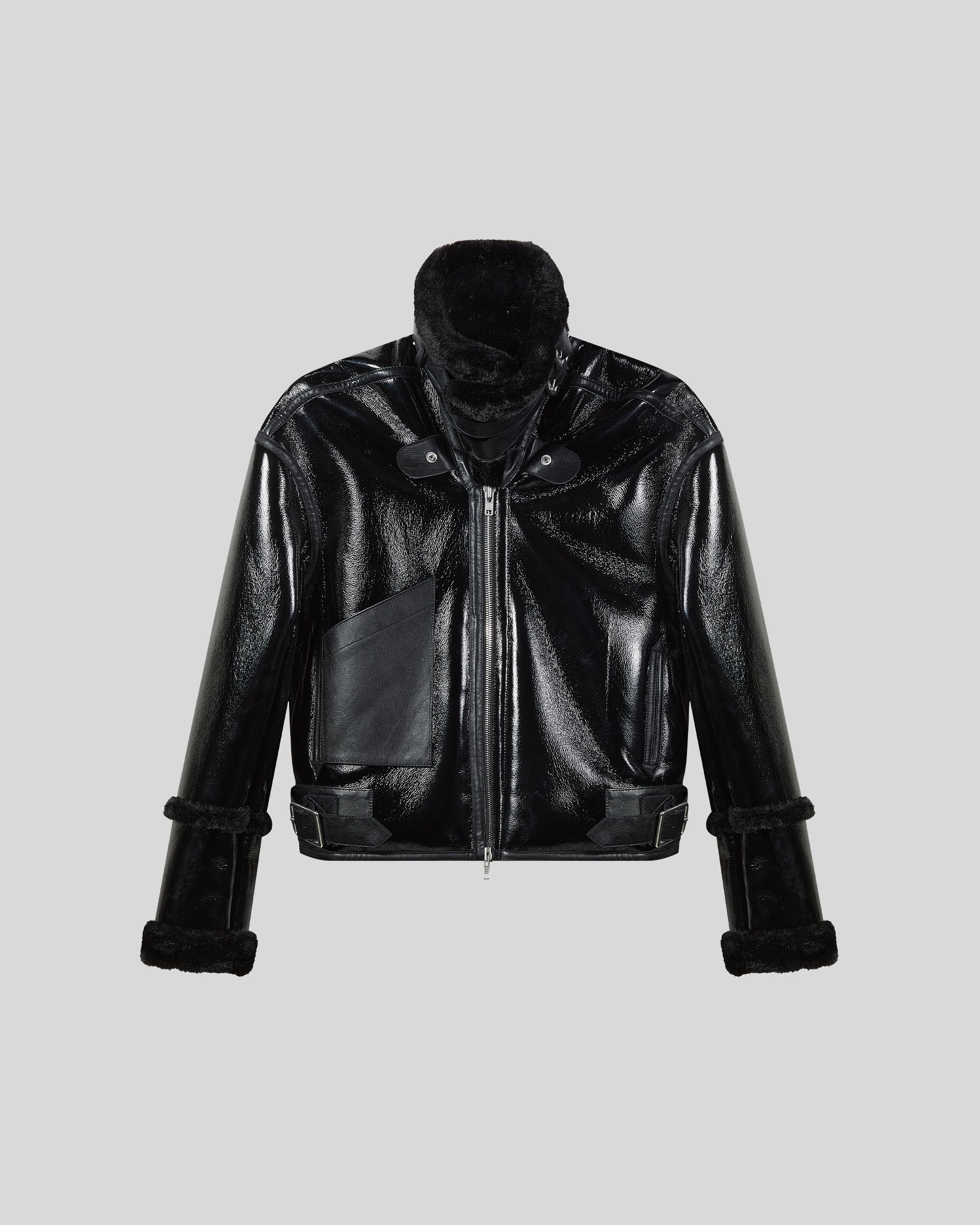 DECONSTRUCTED OVERSIZED PATENT LEATHER JACKET