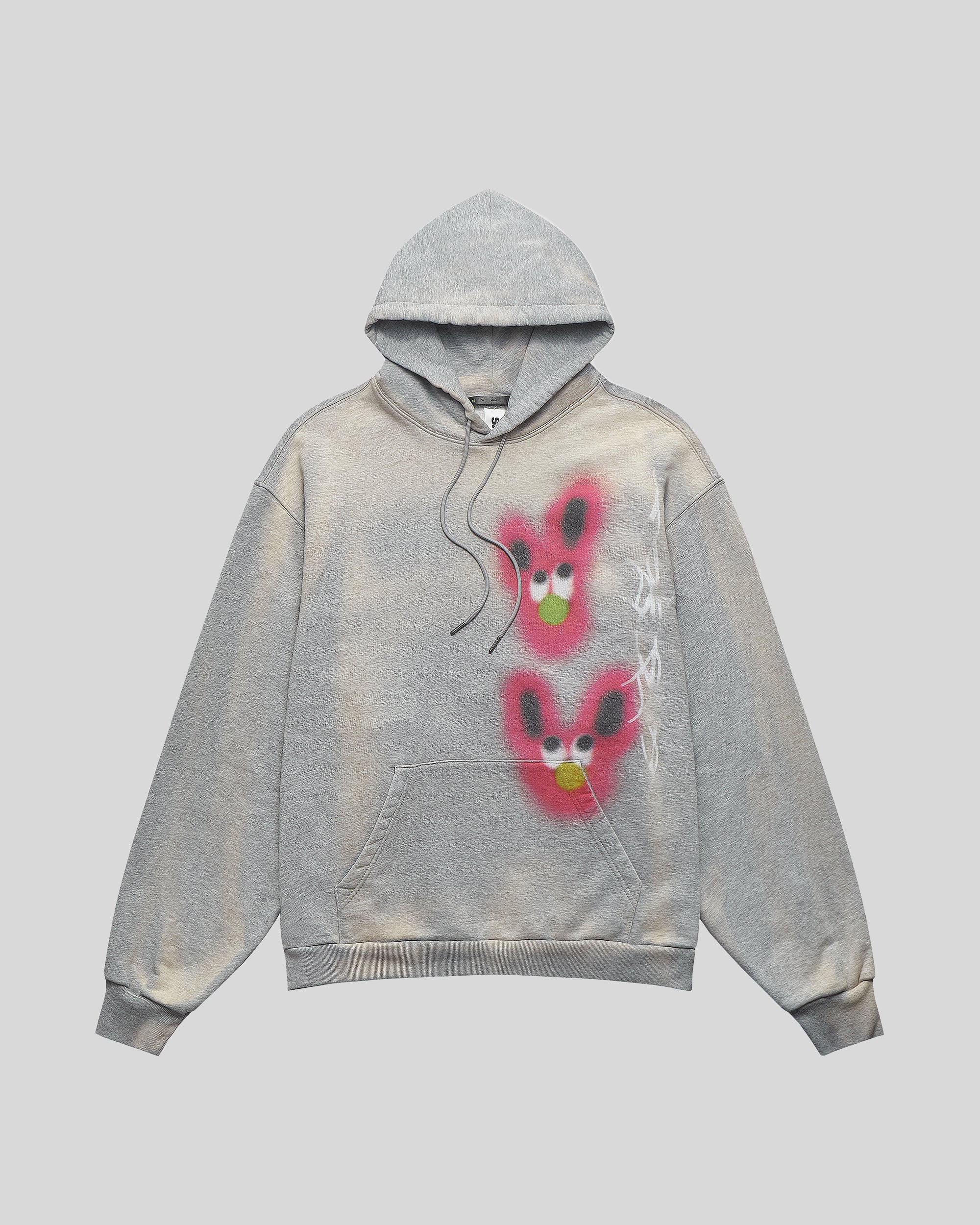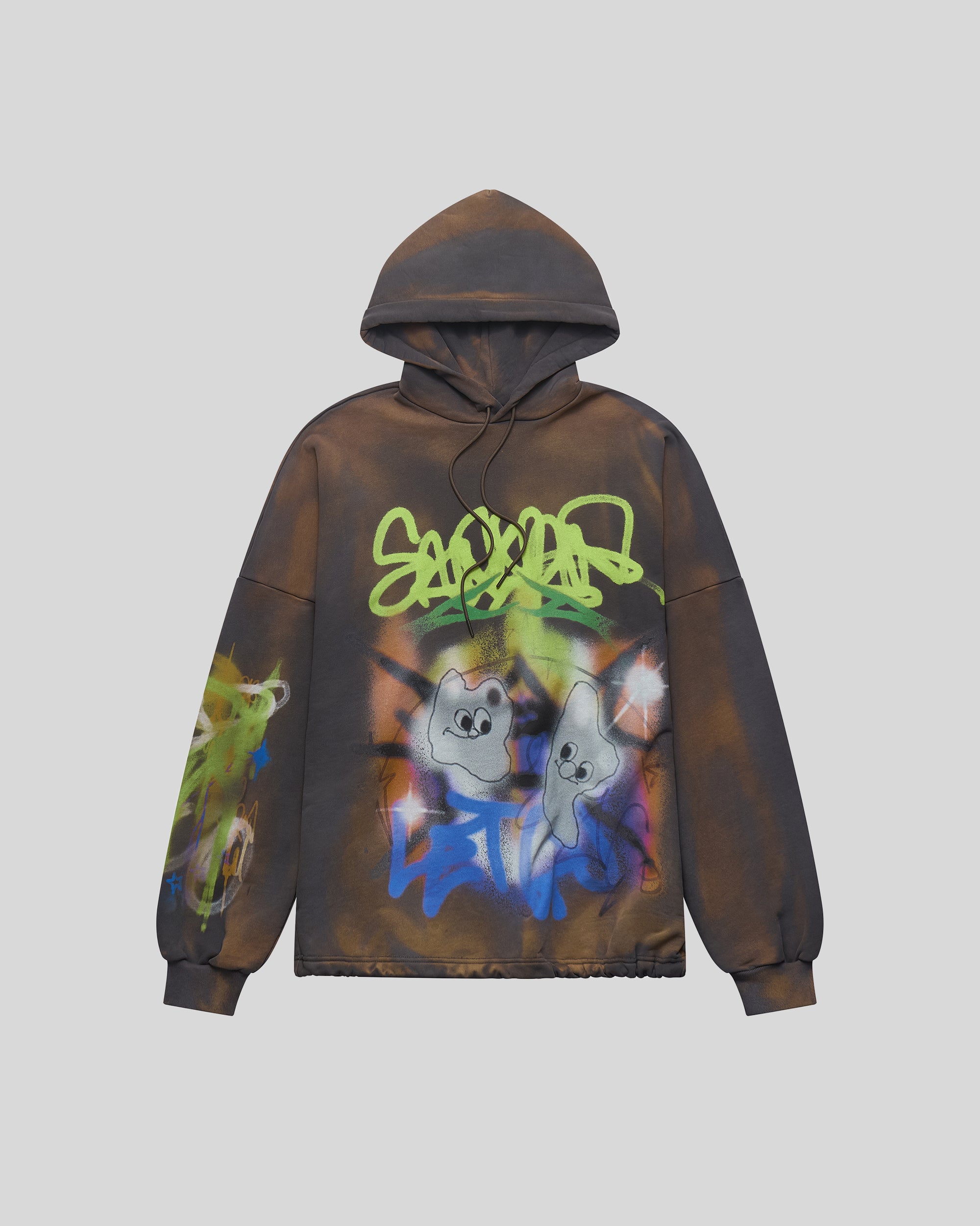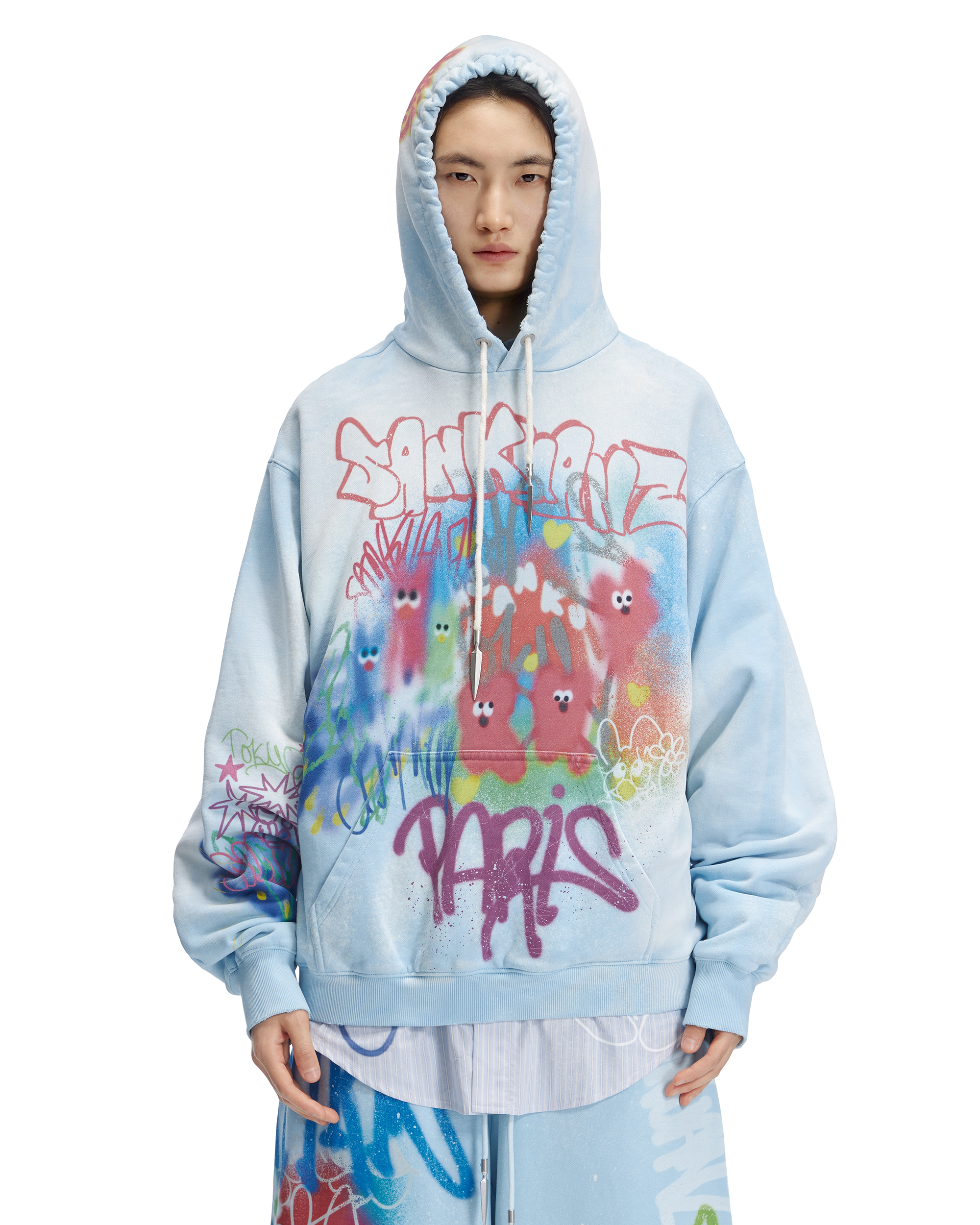 • BUMPY GRAFFITI PRINT BLEACHED HOODIE