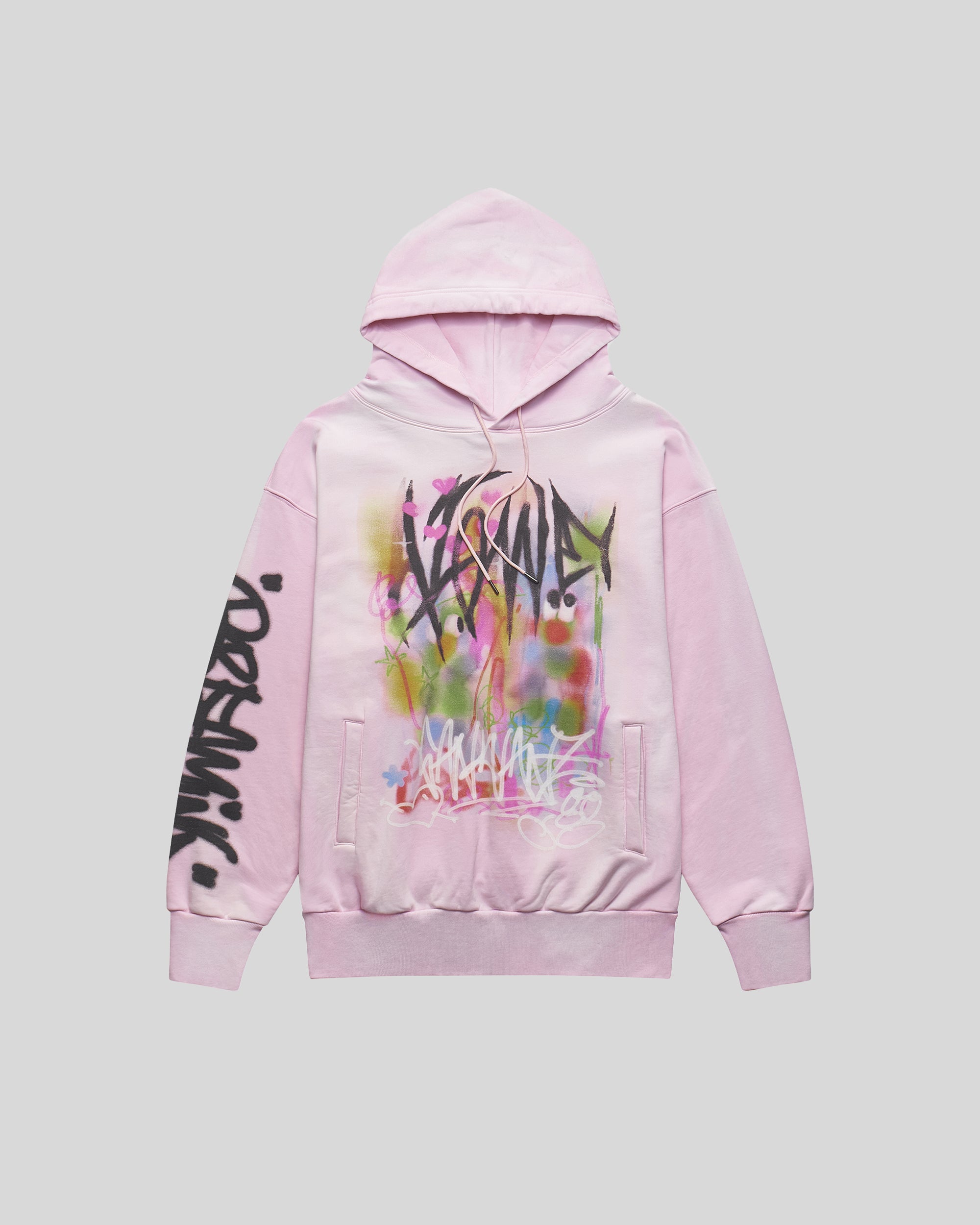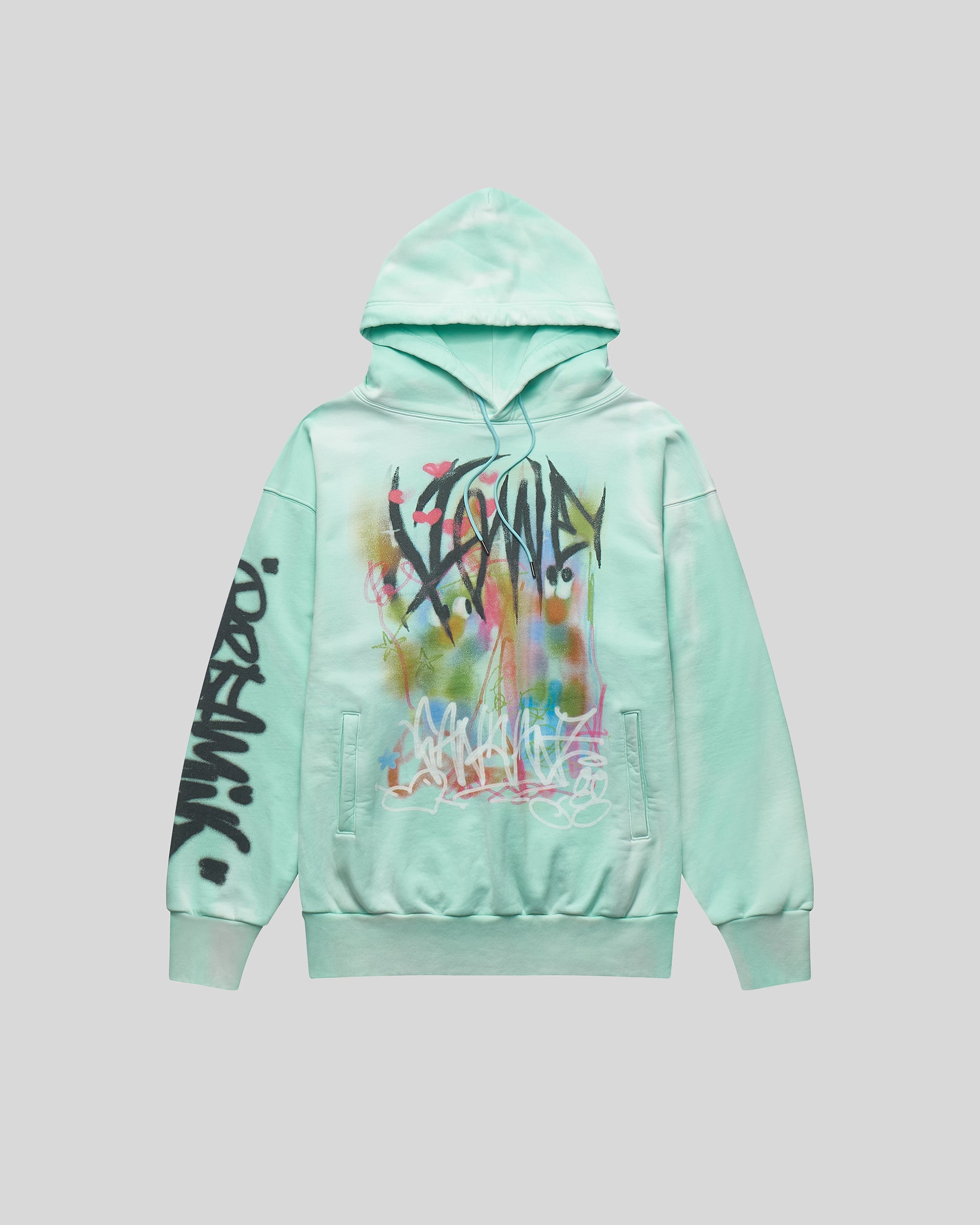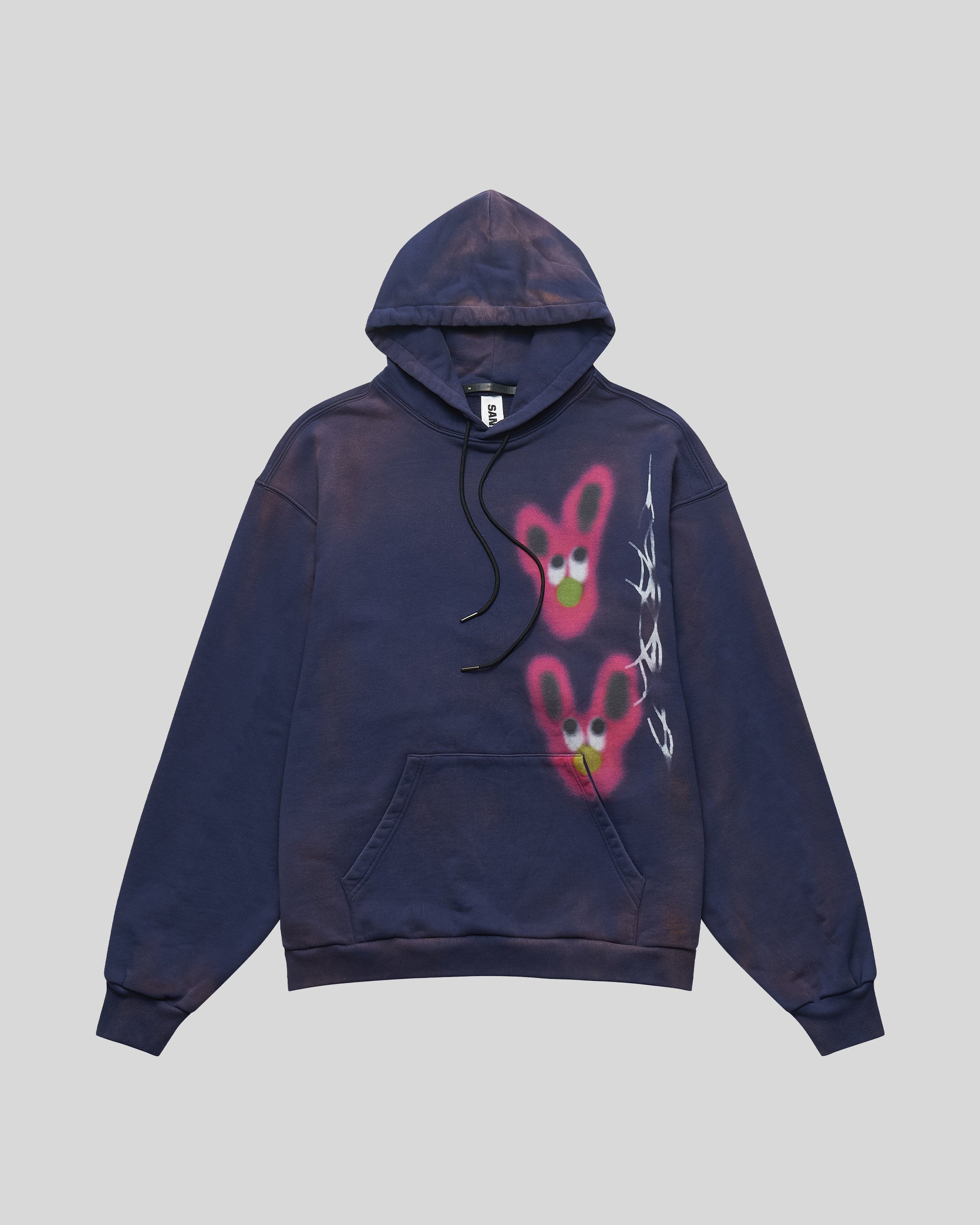 • BUMPY GRAFFITI PRINT BLEACHED HOODIE