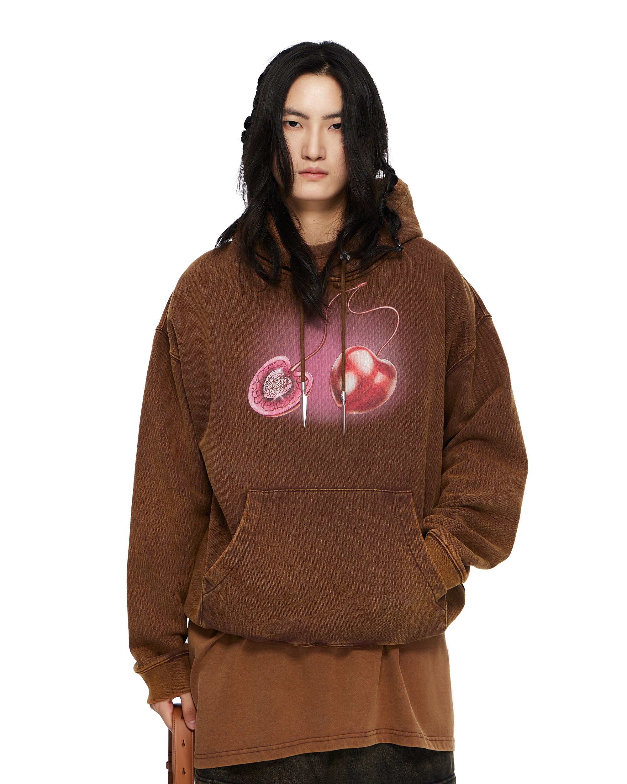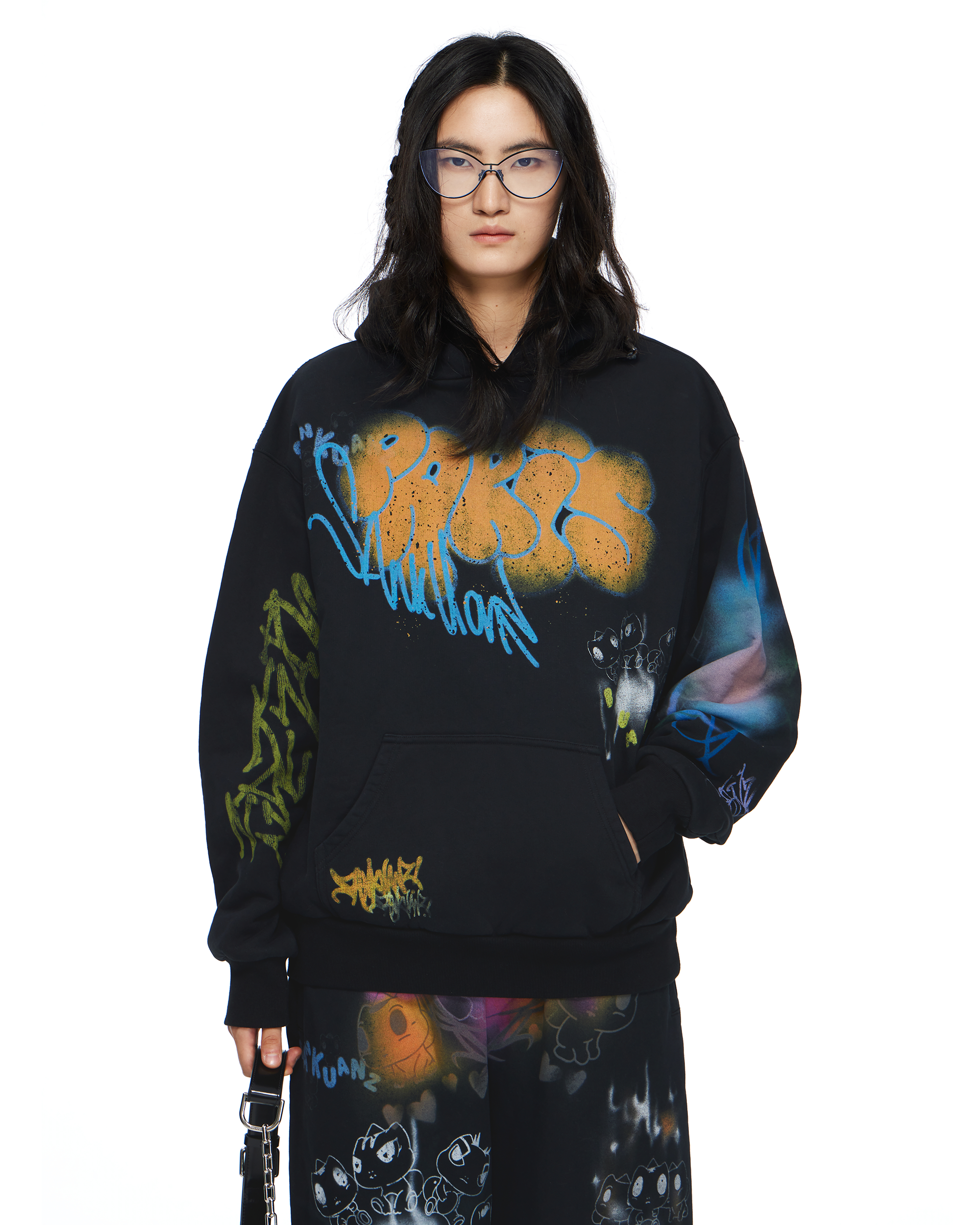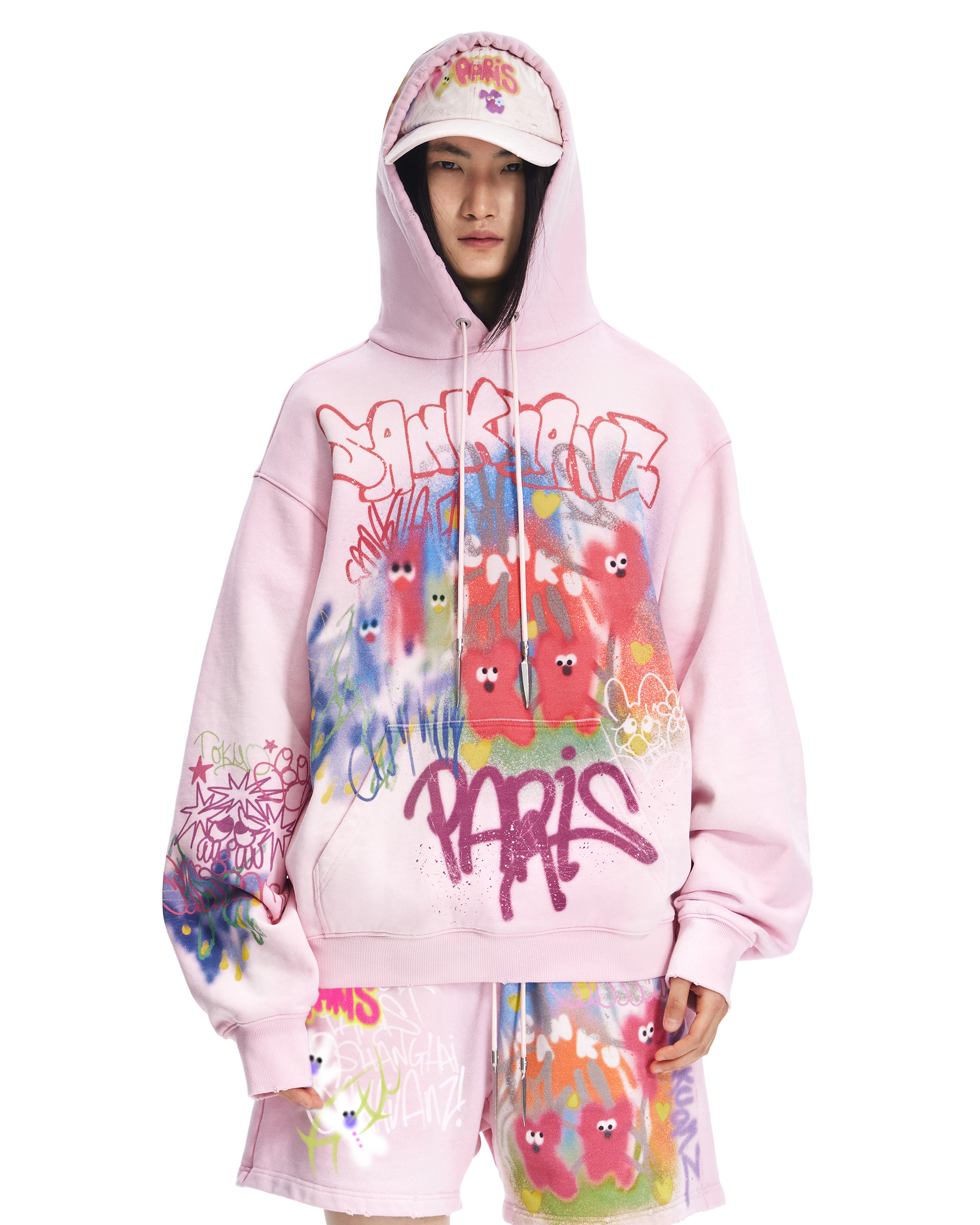 • CHERRY HEART GRAFFITI PRINT HOODIE