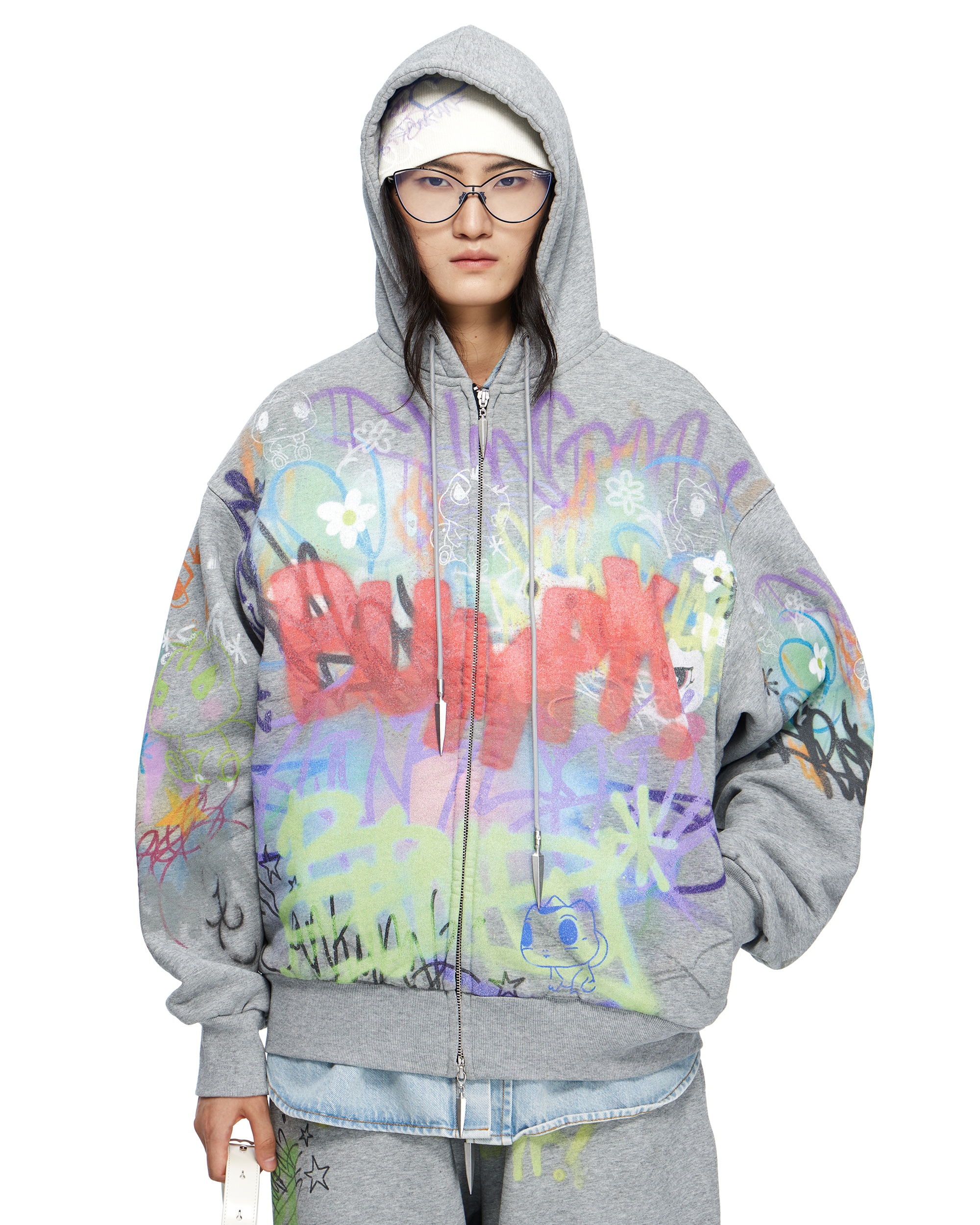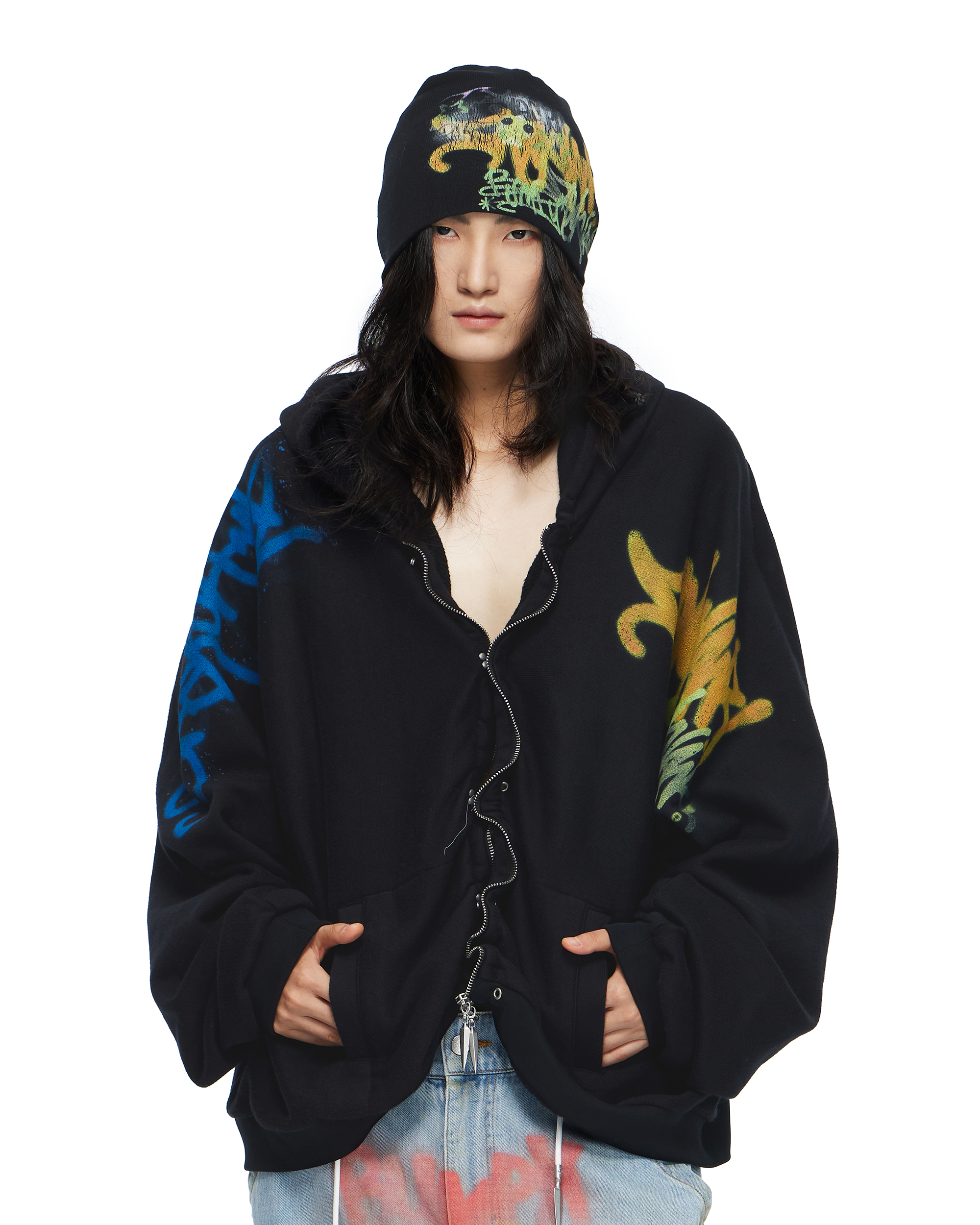 • BUMPY GRAFFITI ZIP-UP HOODIE
