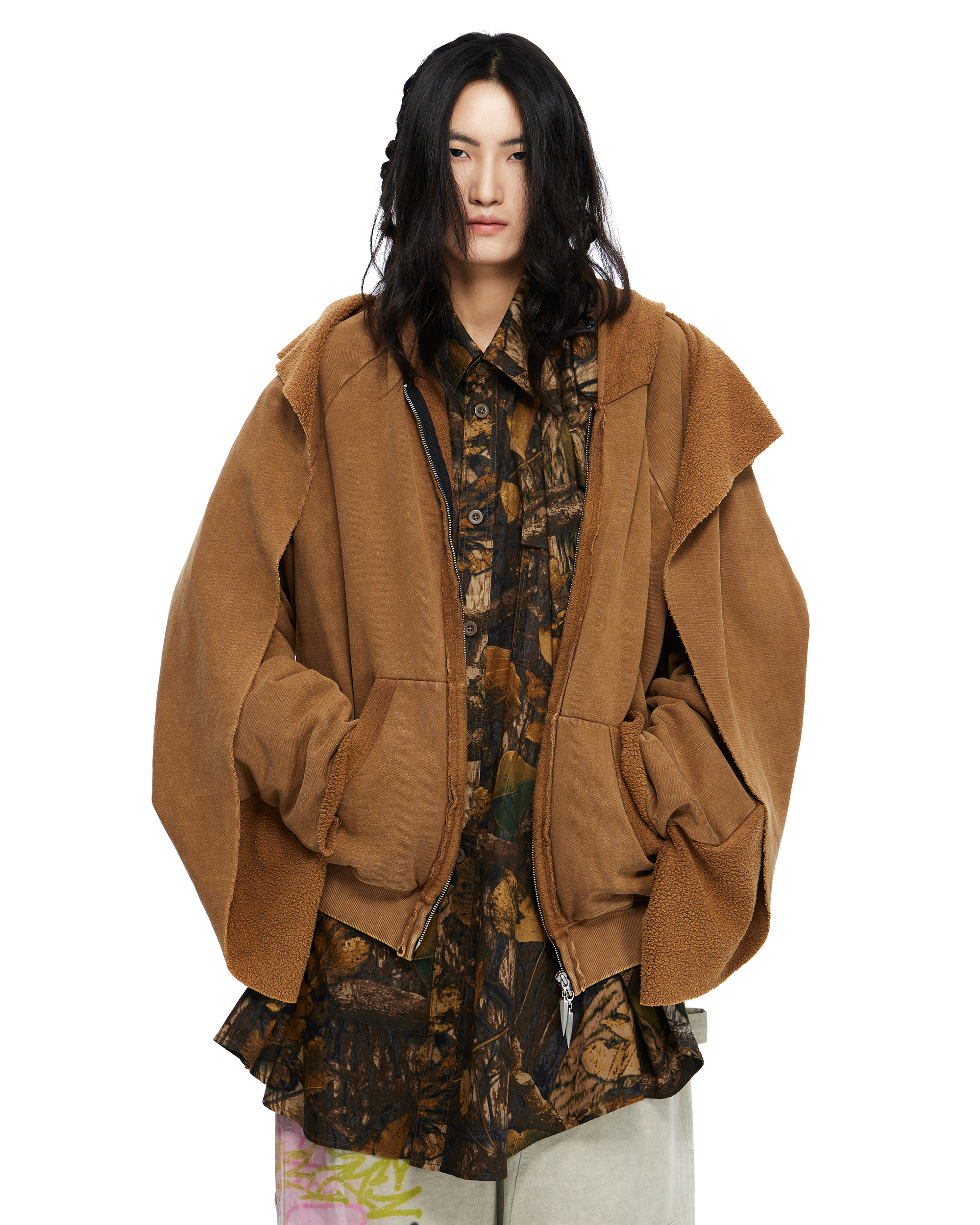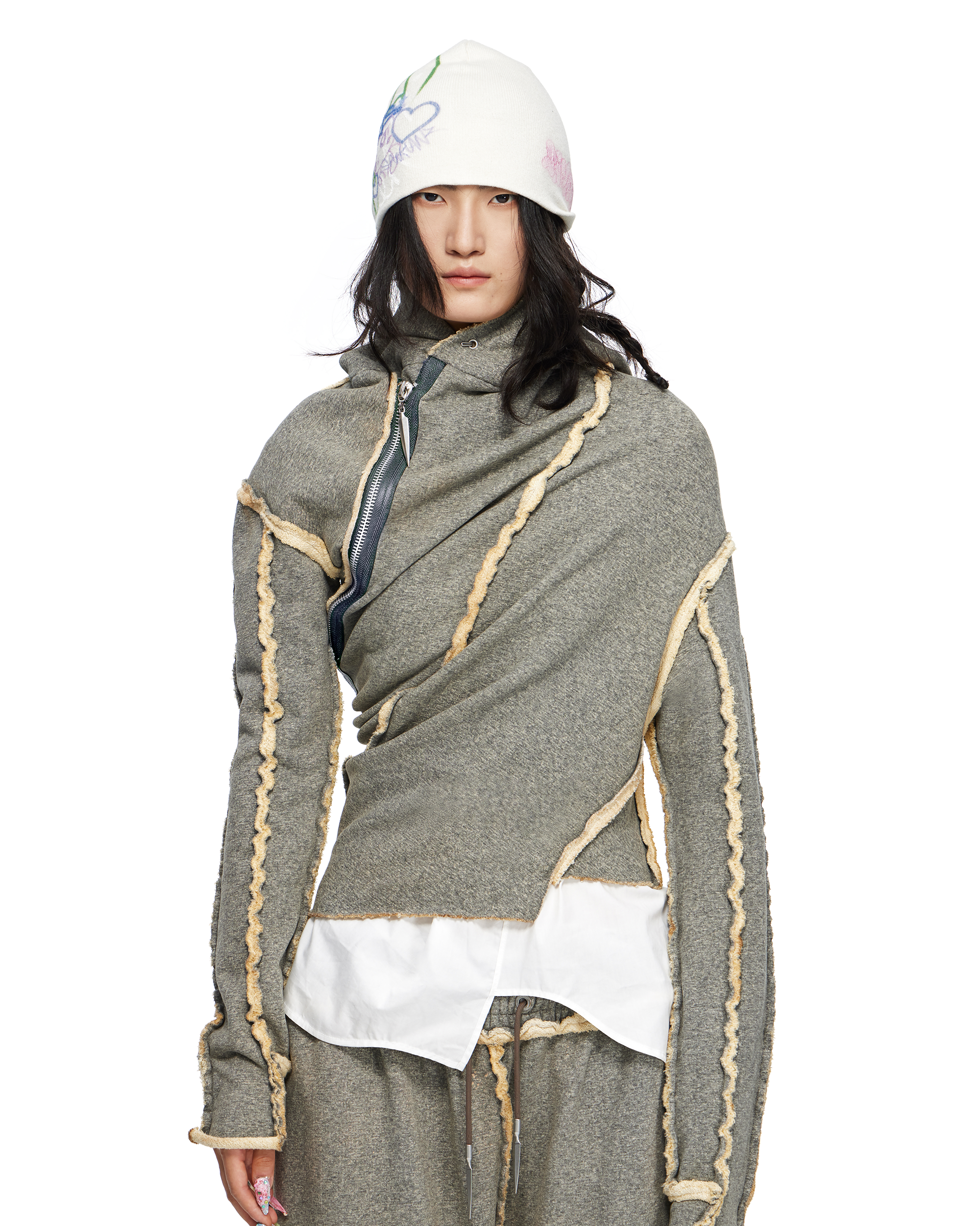 • DOUBLE ZIP RAW EDGE FITTED HOODIE