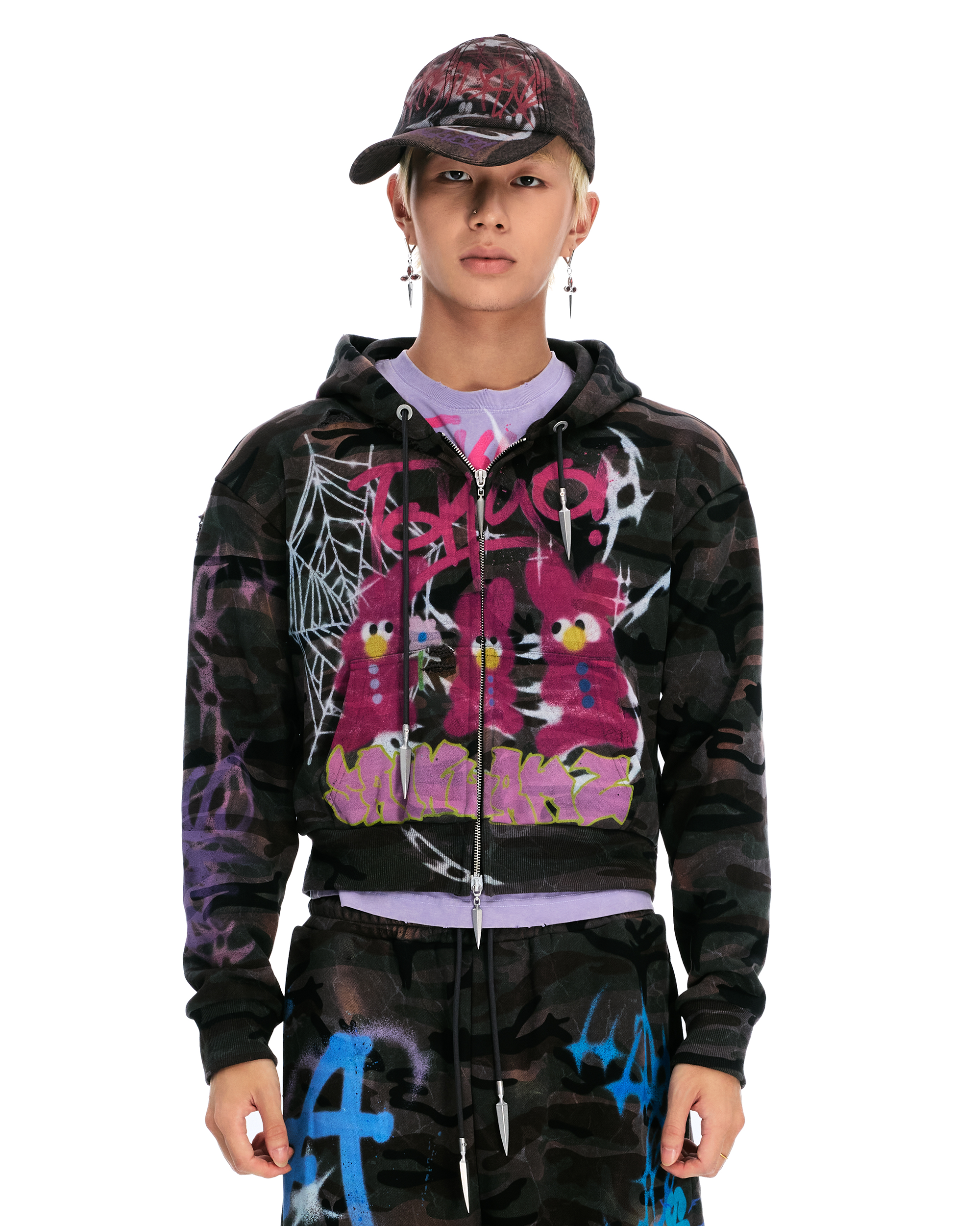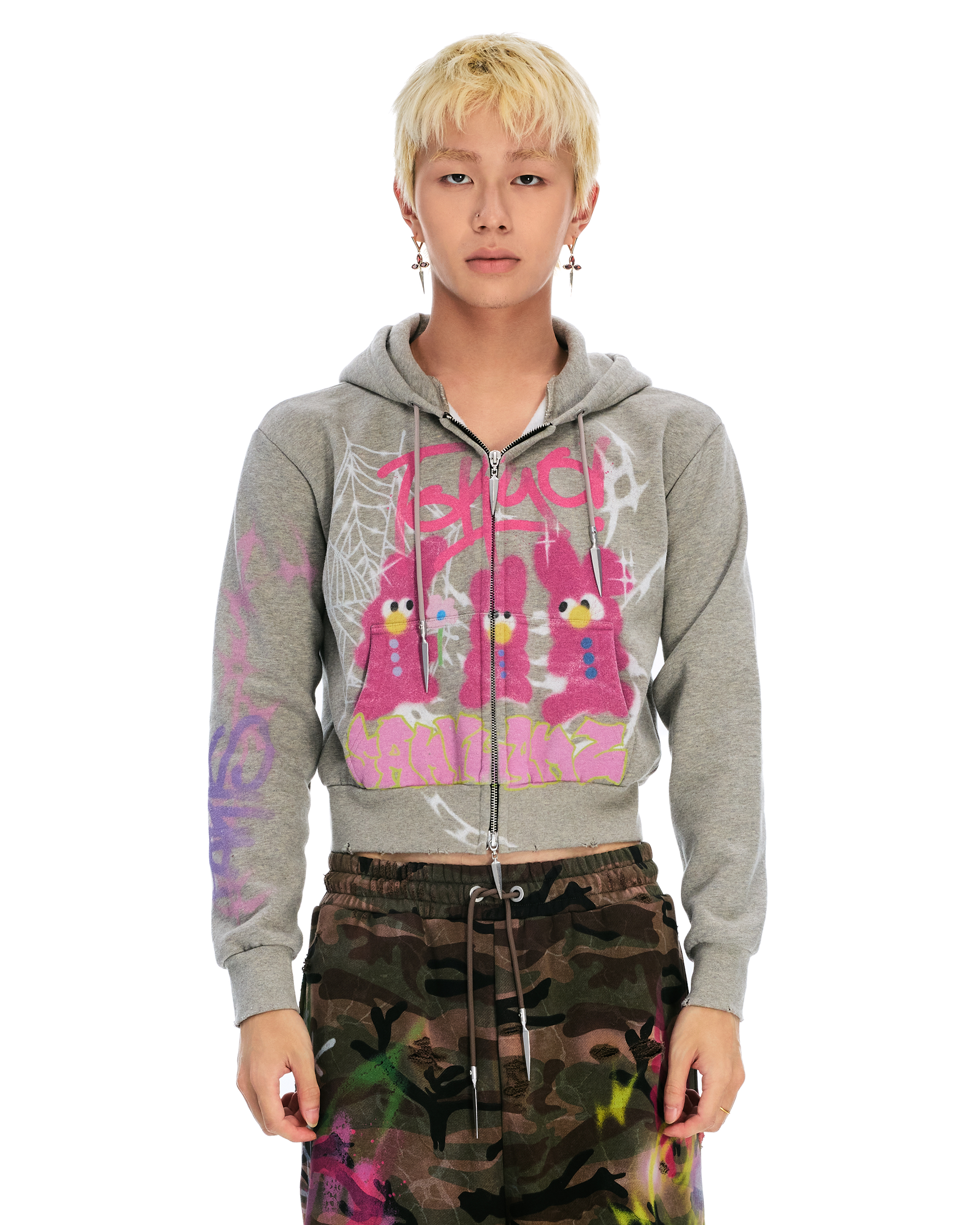 • BUMPY GRAFFITI CROPPED ZIP-UP HOODIE