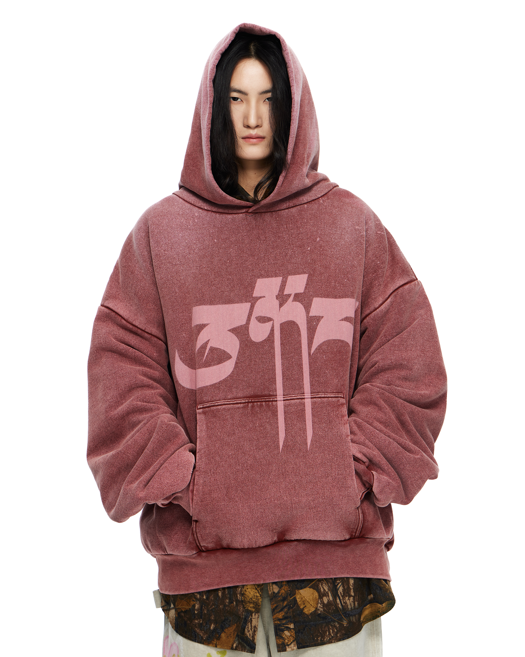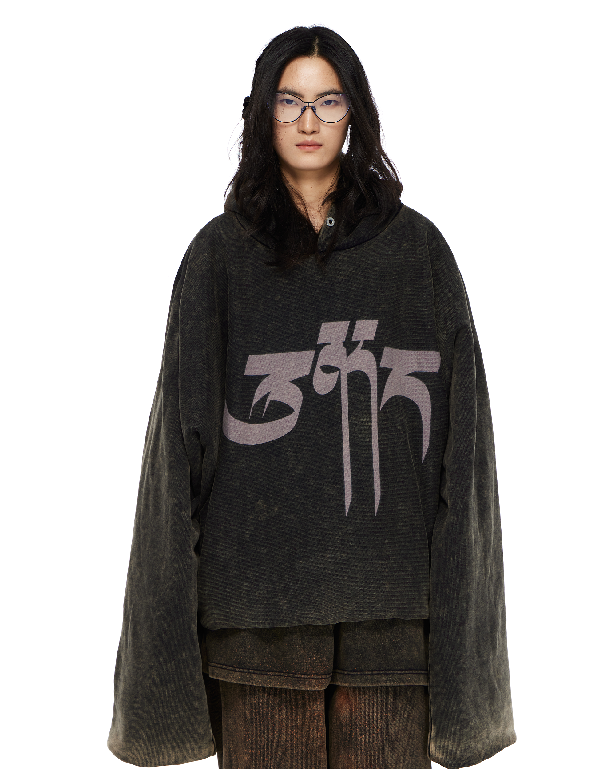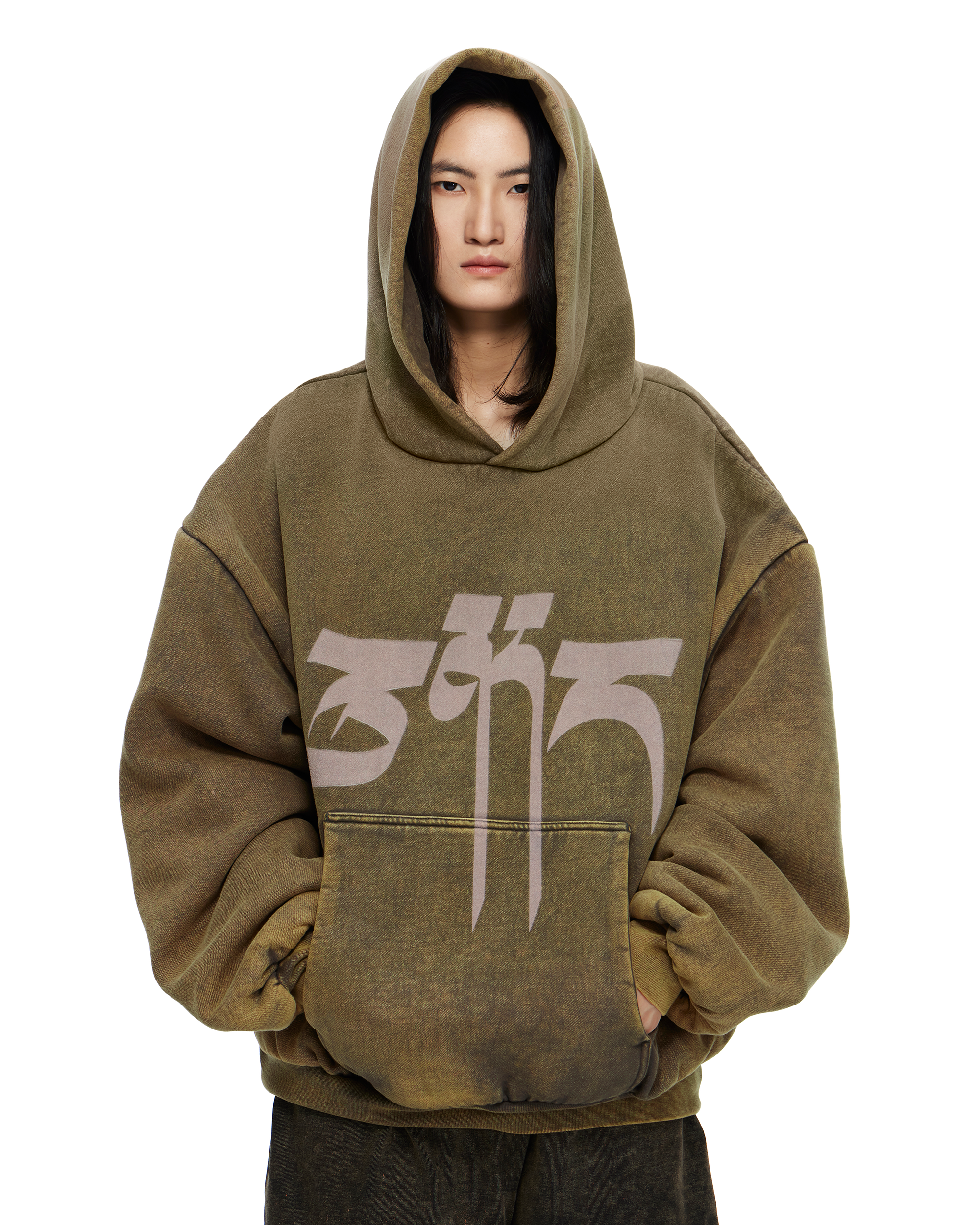• MONOGRAM PRINT DISTRESSED HOODIE