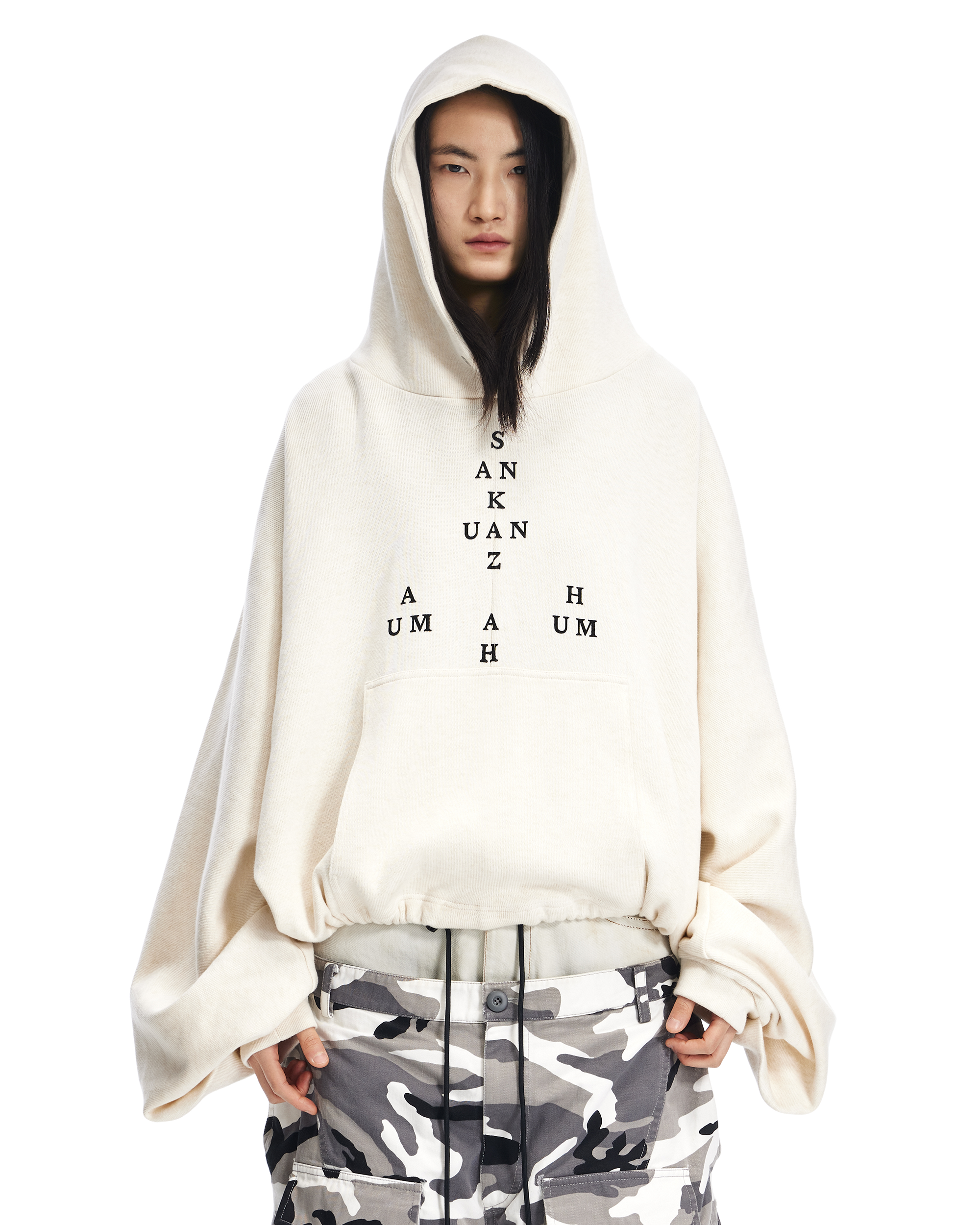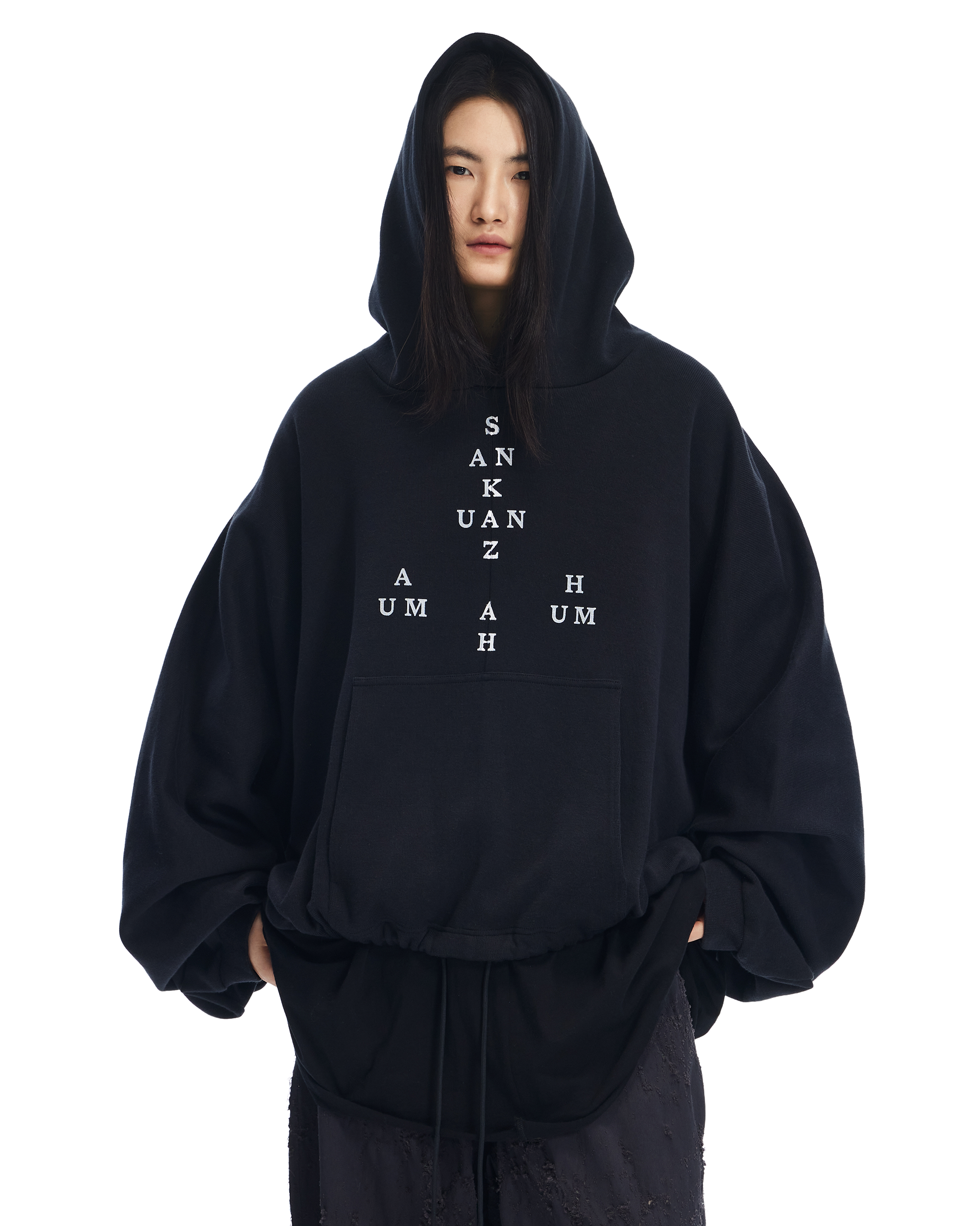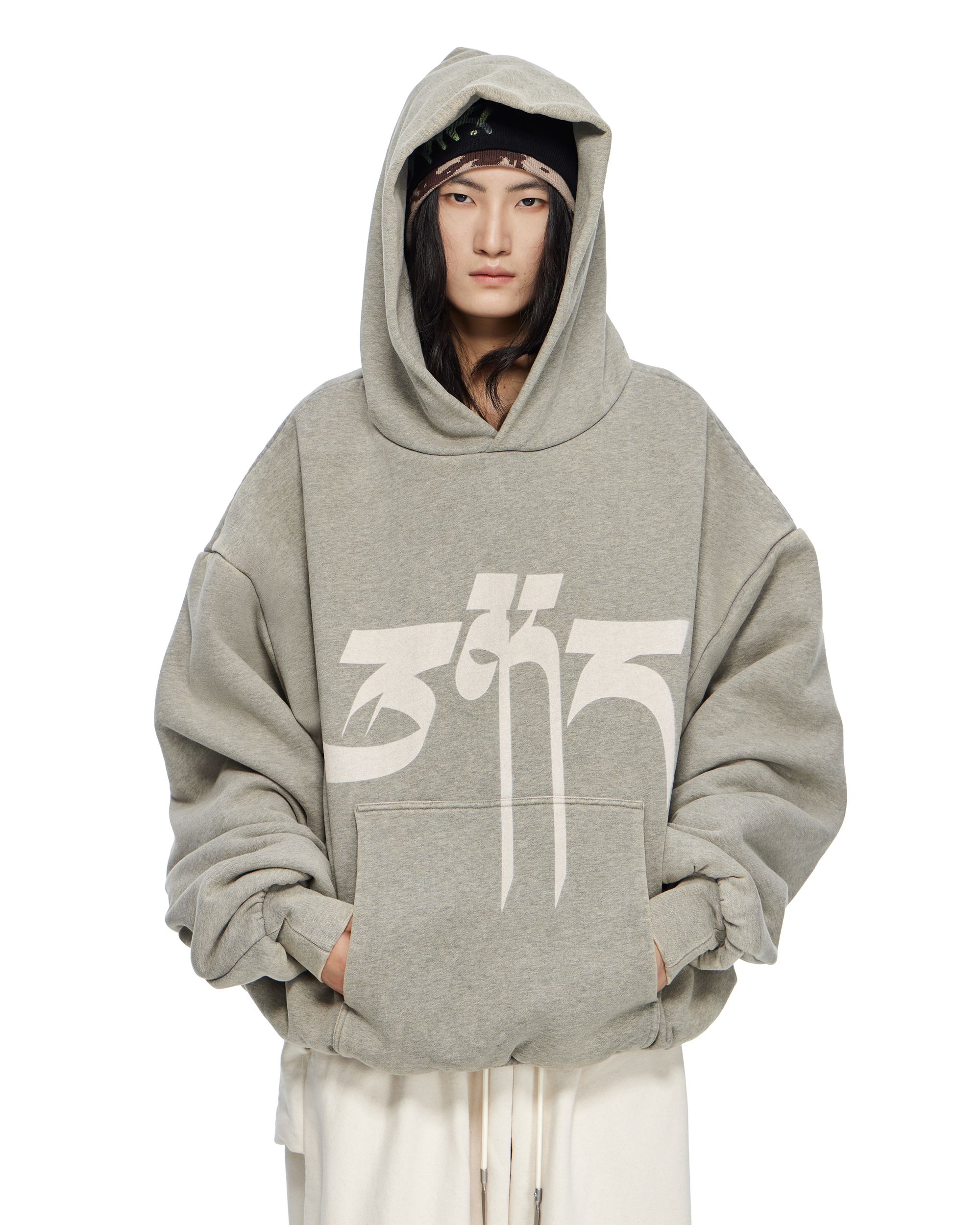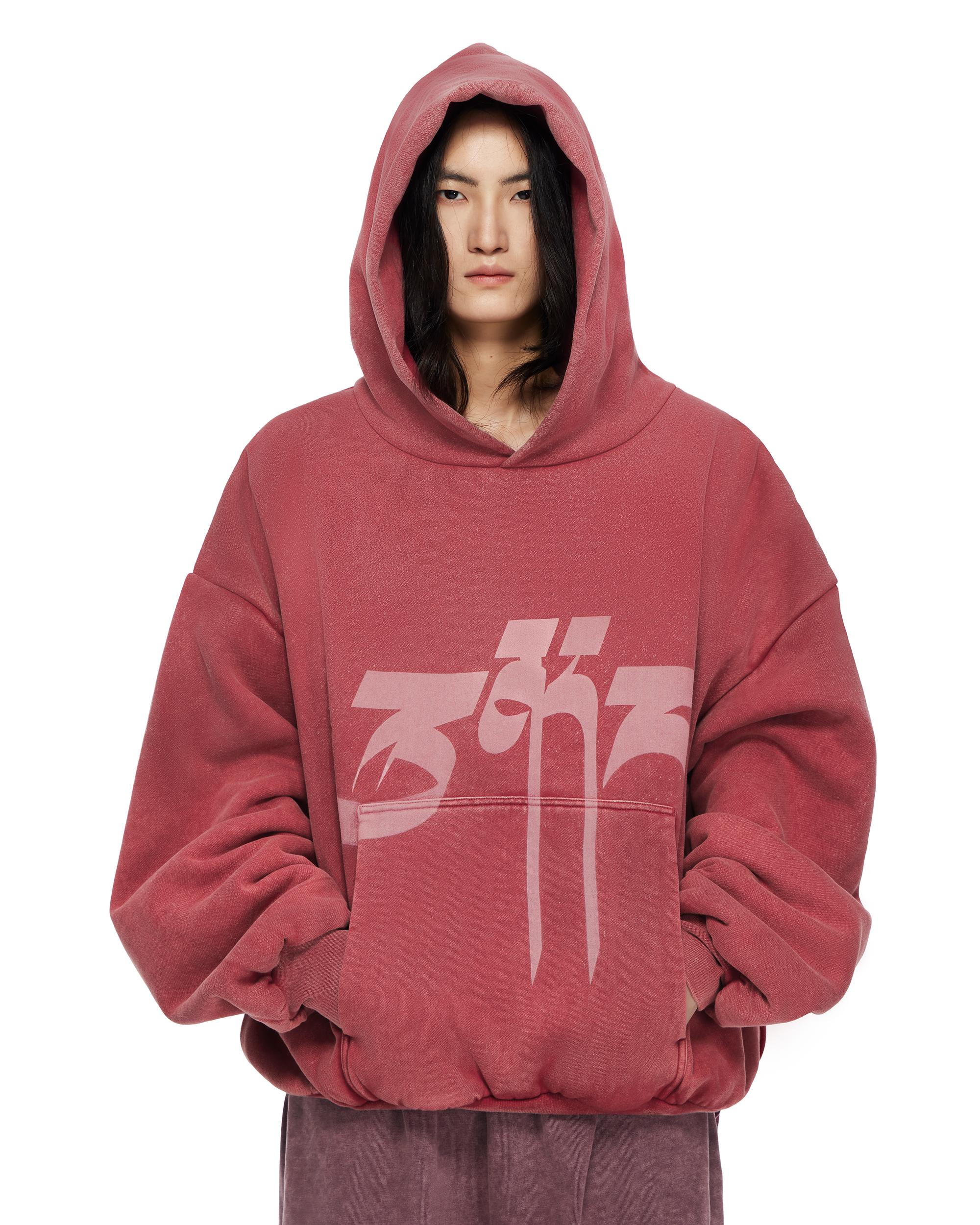 • MONOGRAM PRINT DISTRESSED HOODIE