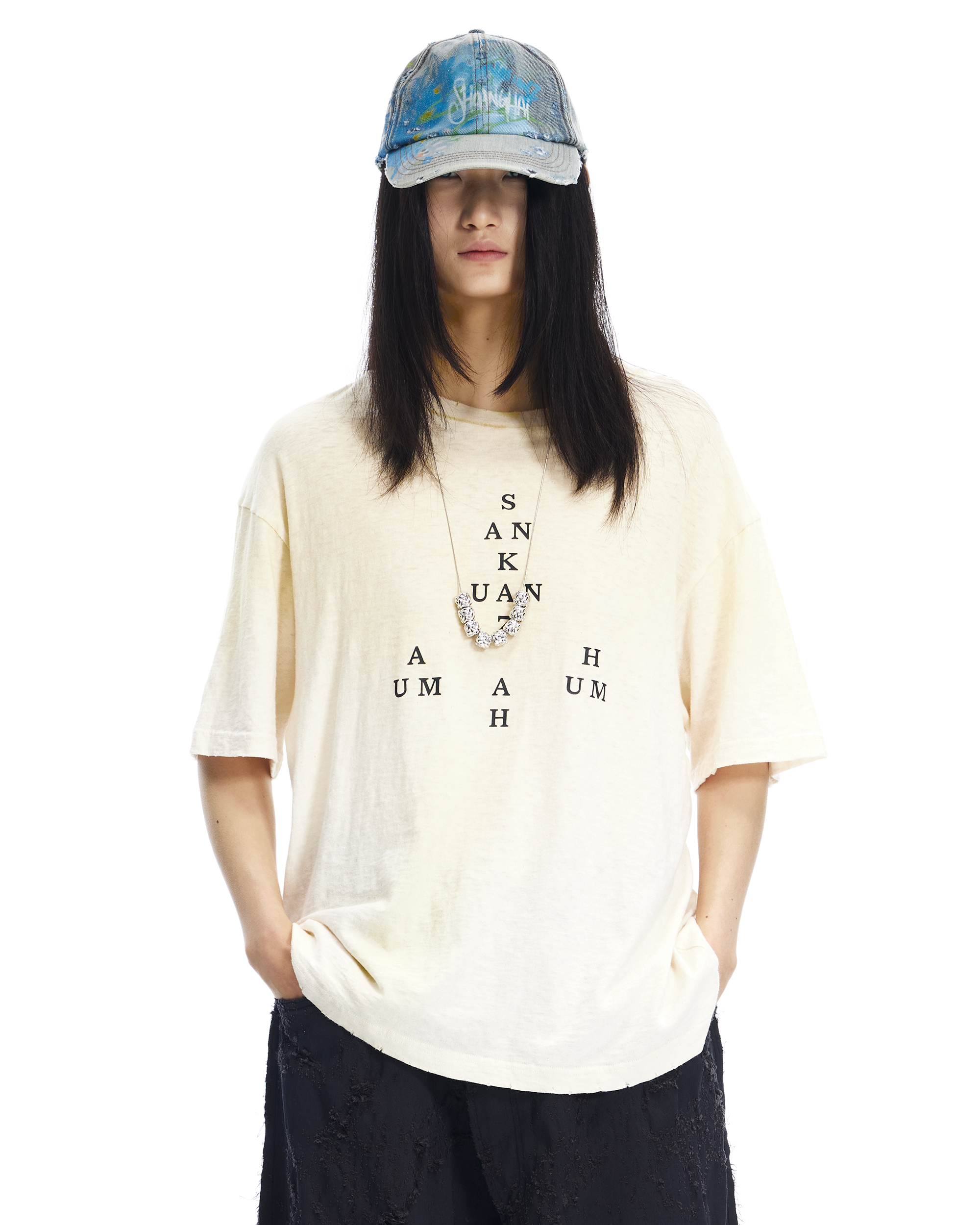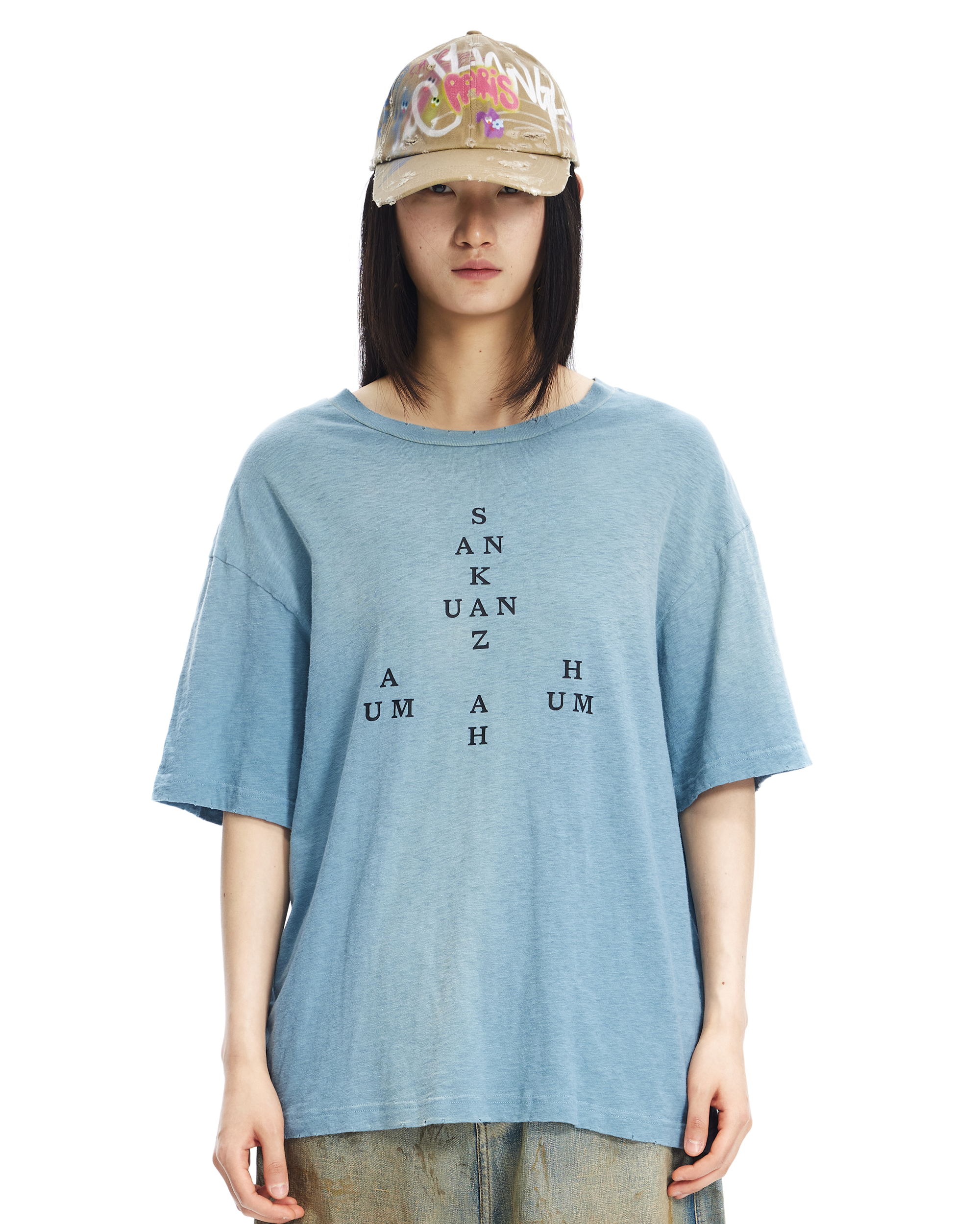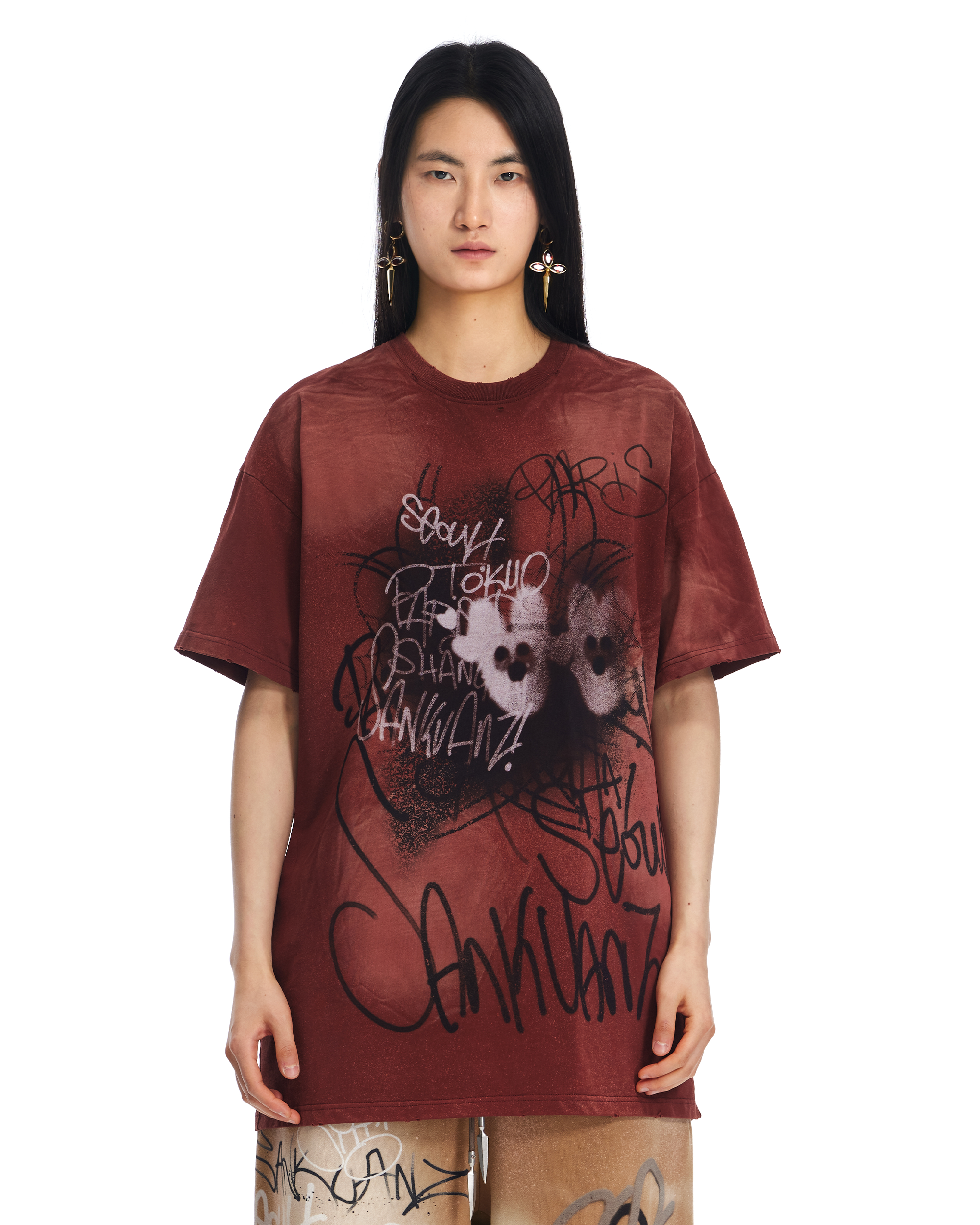 BUMPY GRAFFITI DISTRESSED OVERSIZE SHORT-SLEEVE TEE
