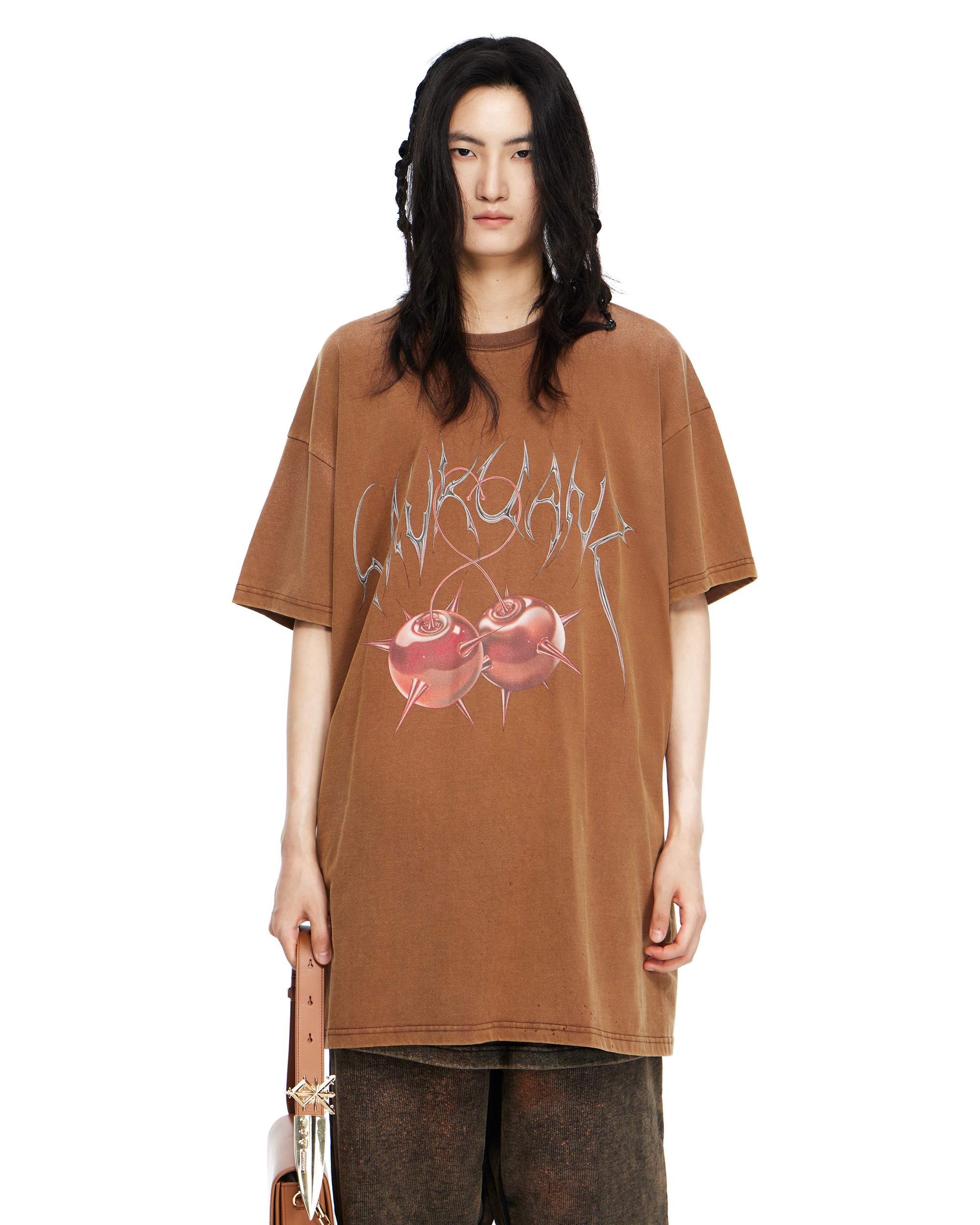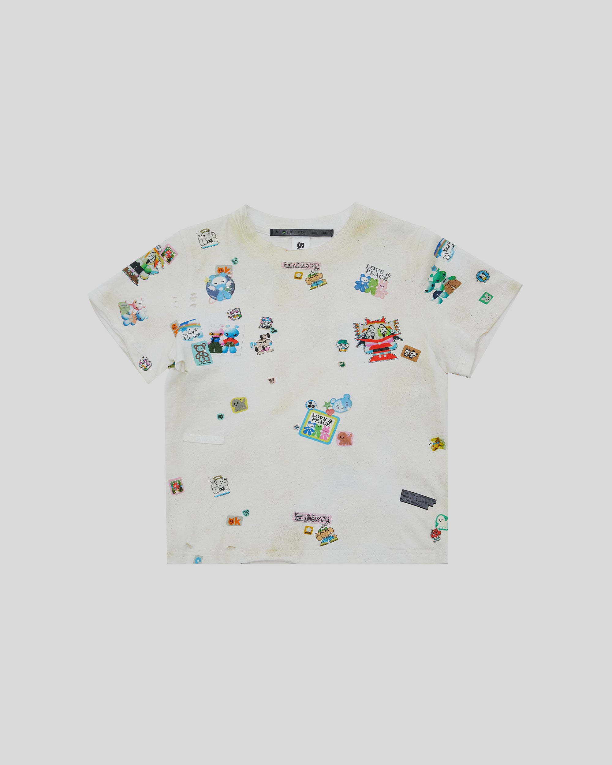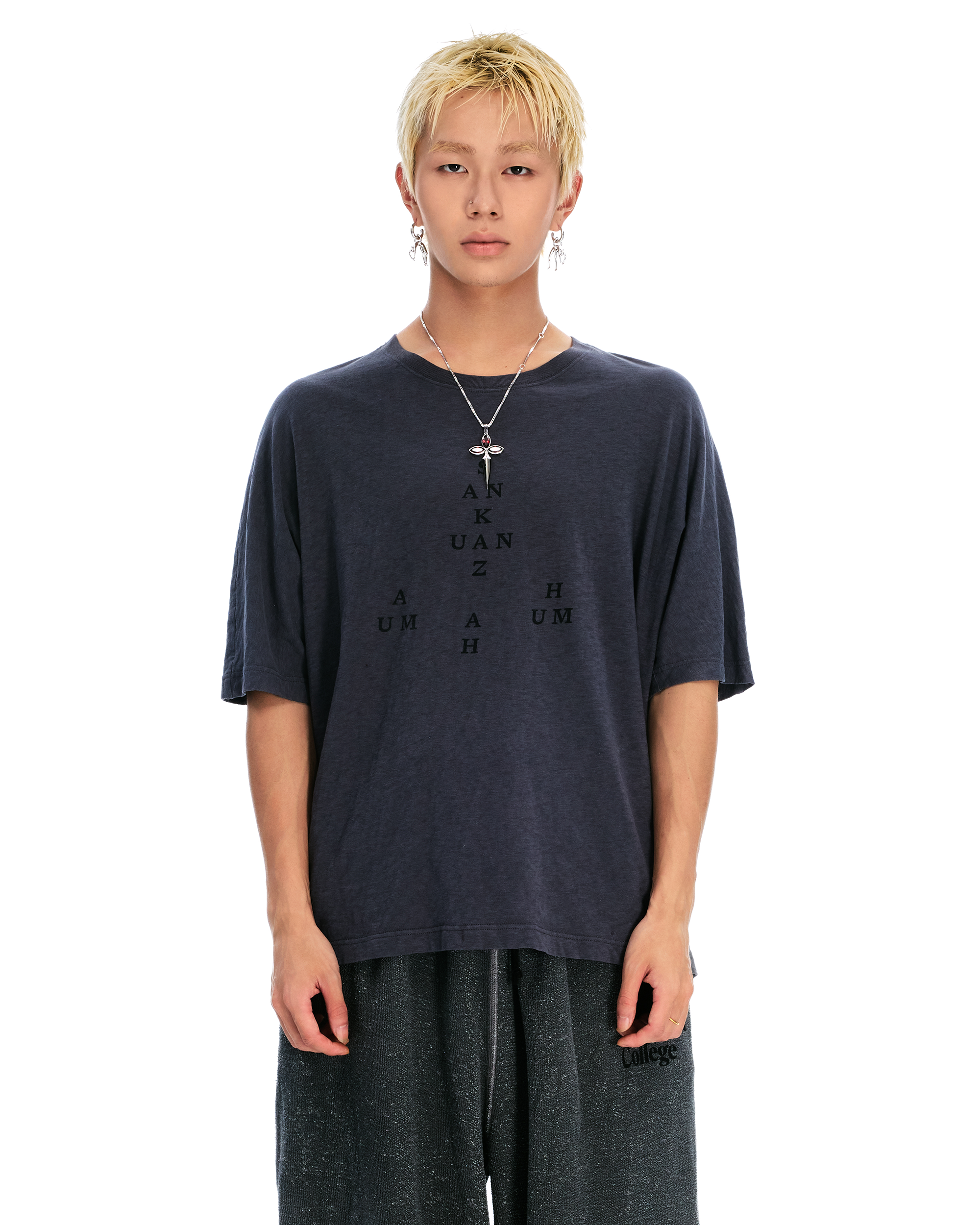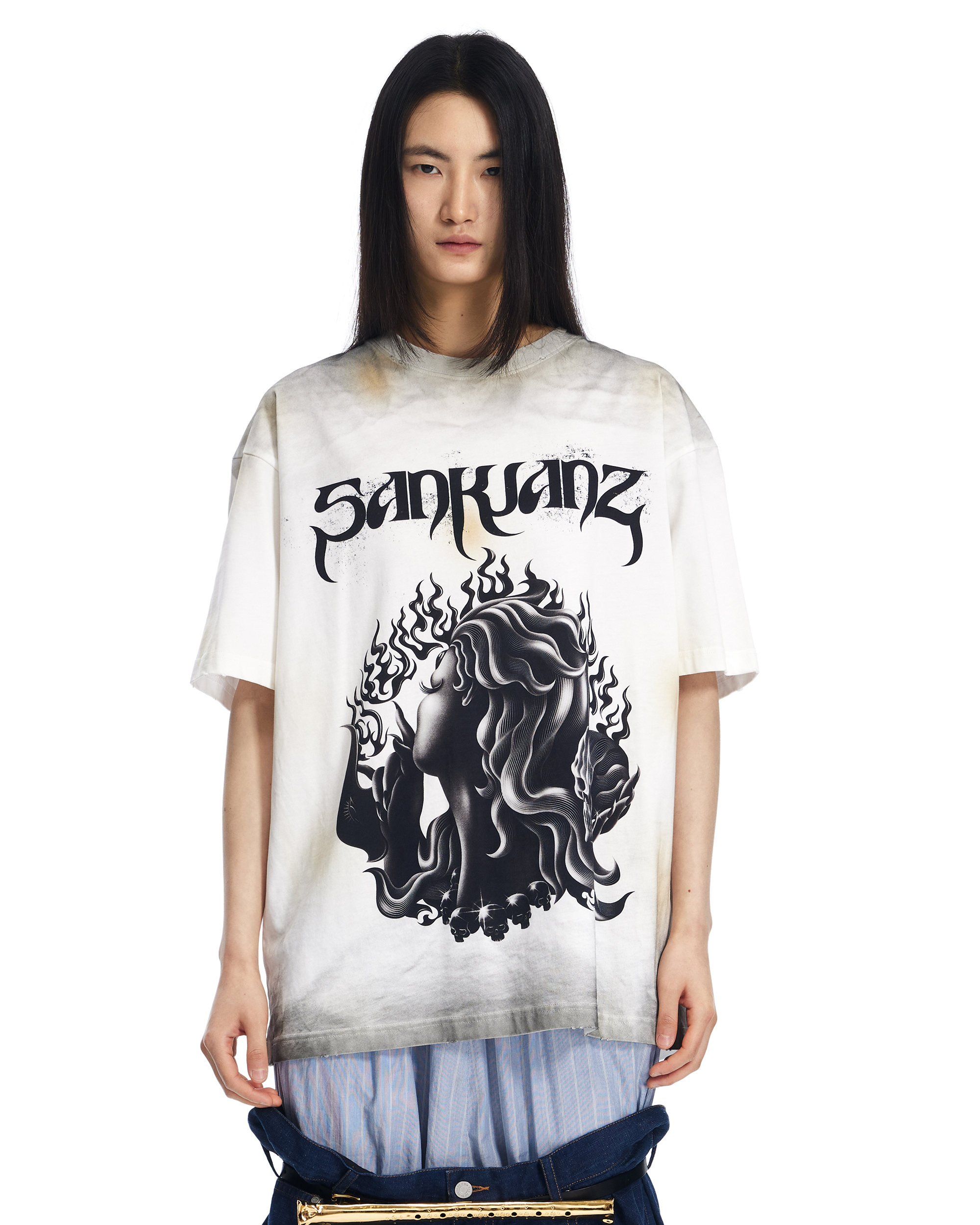 BUMPY GRAFFITI DISTRESSED OVERSIZE SHORT-SLEEVE TEE