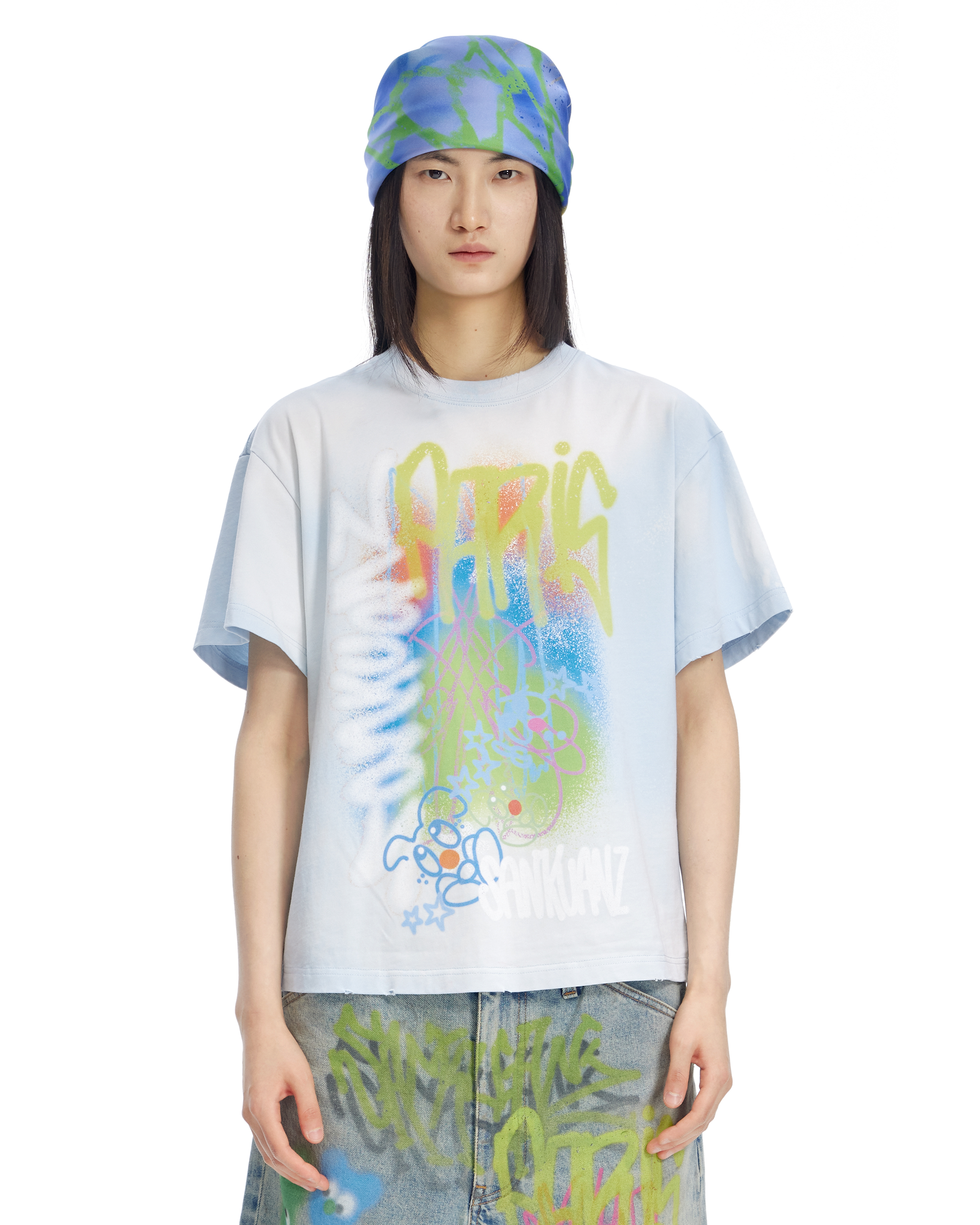 BUMPY GRAFFITI PRINT BLEACHED RELAXED T-SHIRT