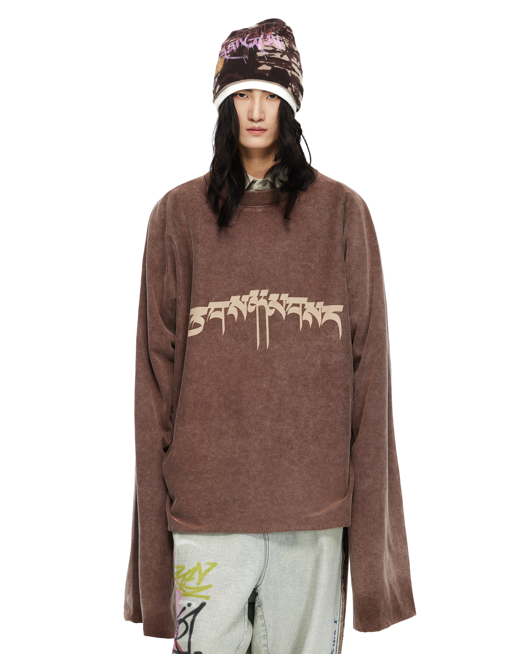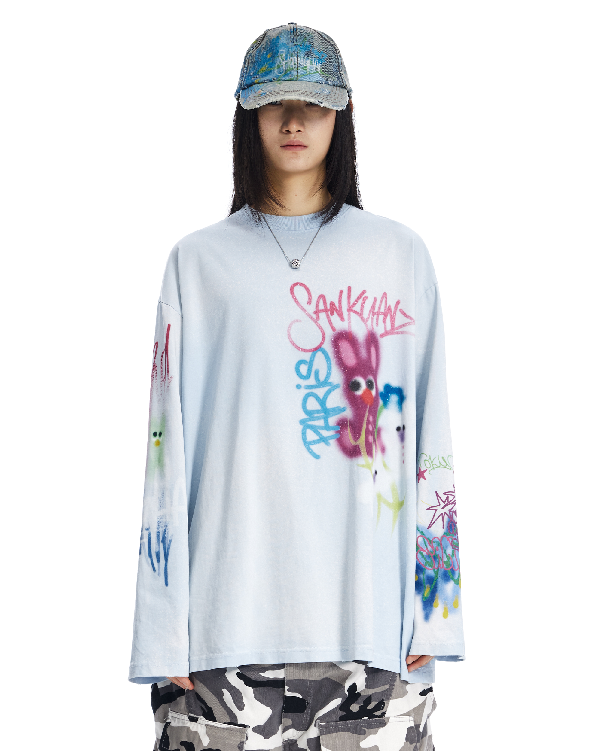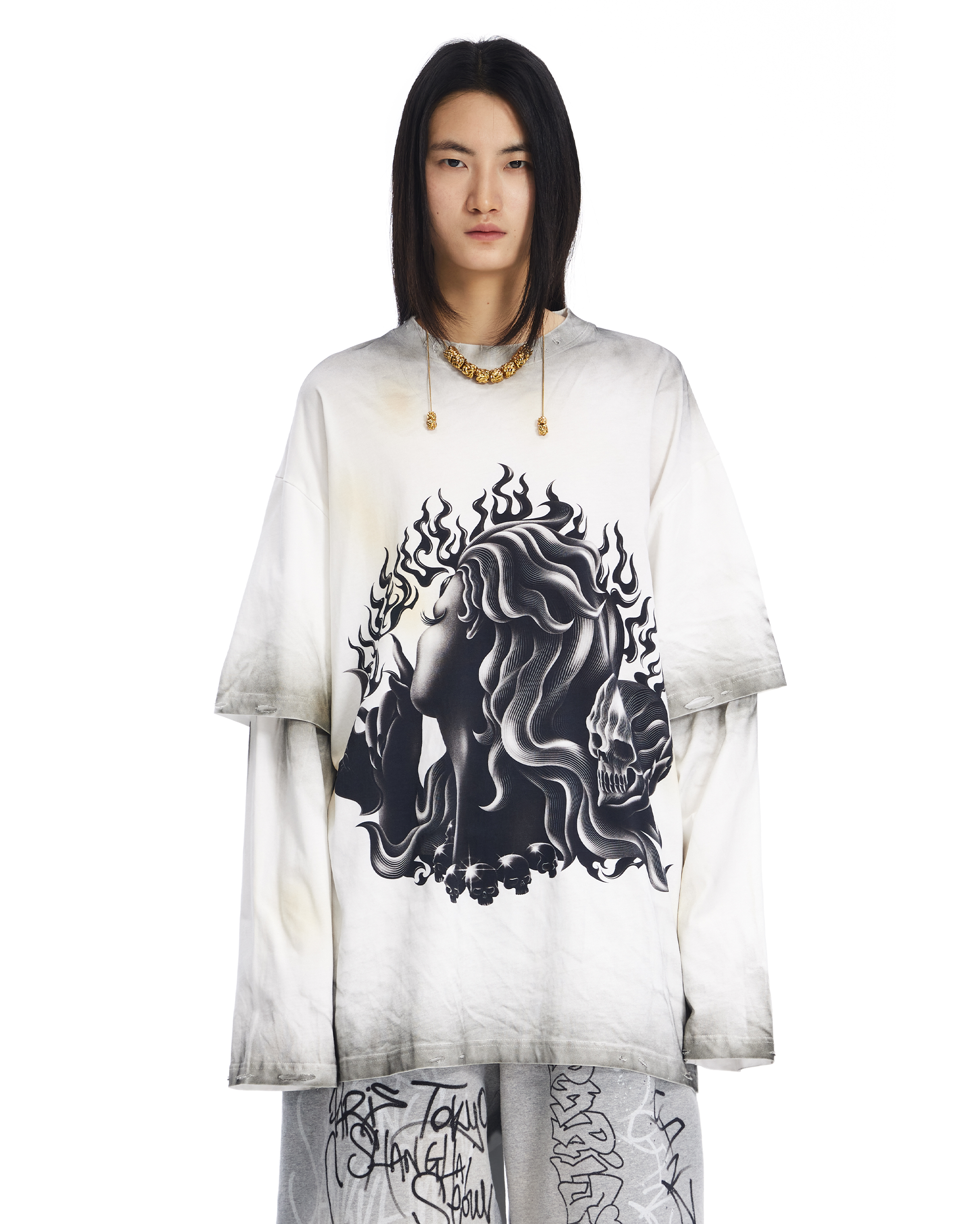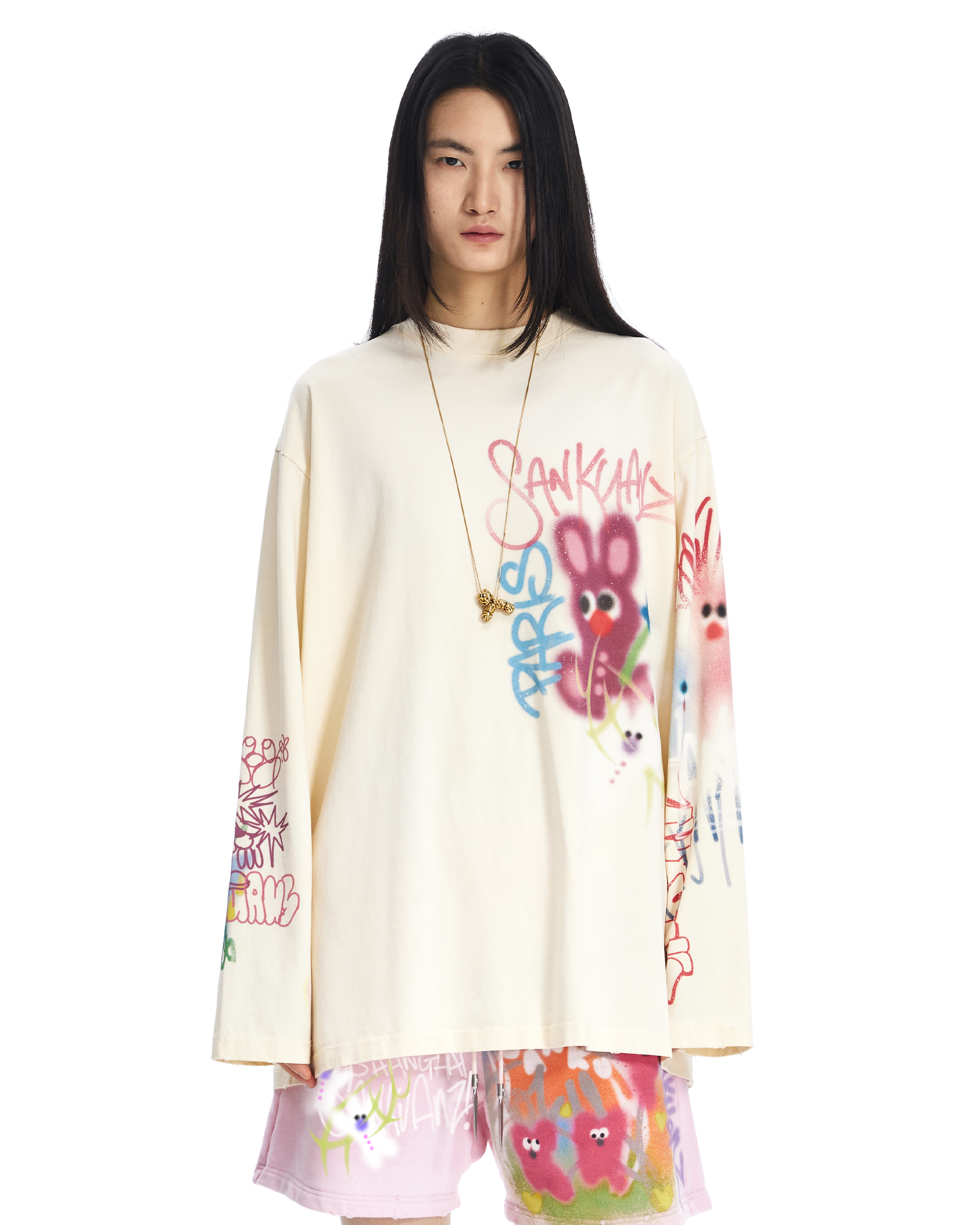 BUMPY OVERSIZED LAYERED GRAFFITI LONG-SLEEVE T-SHIRT