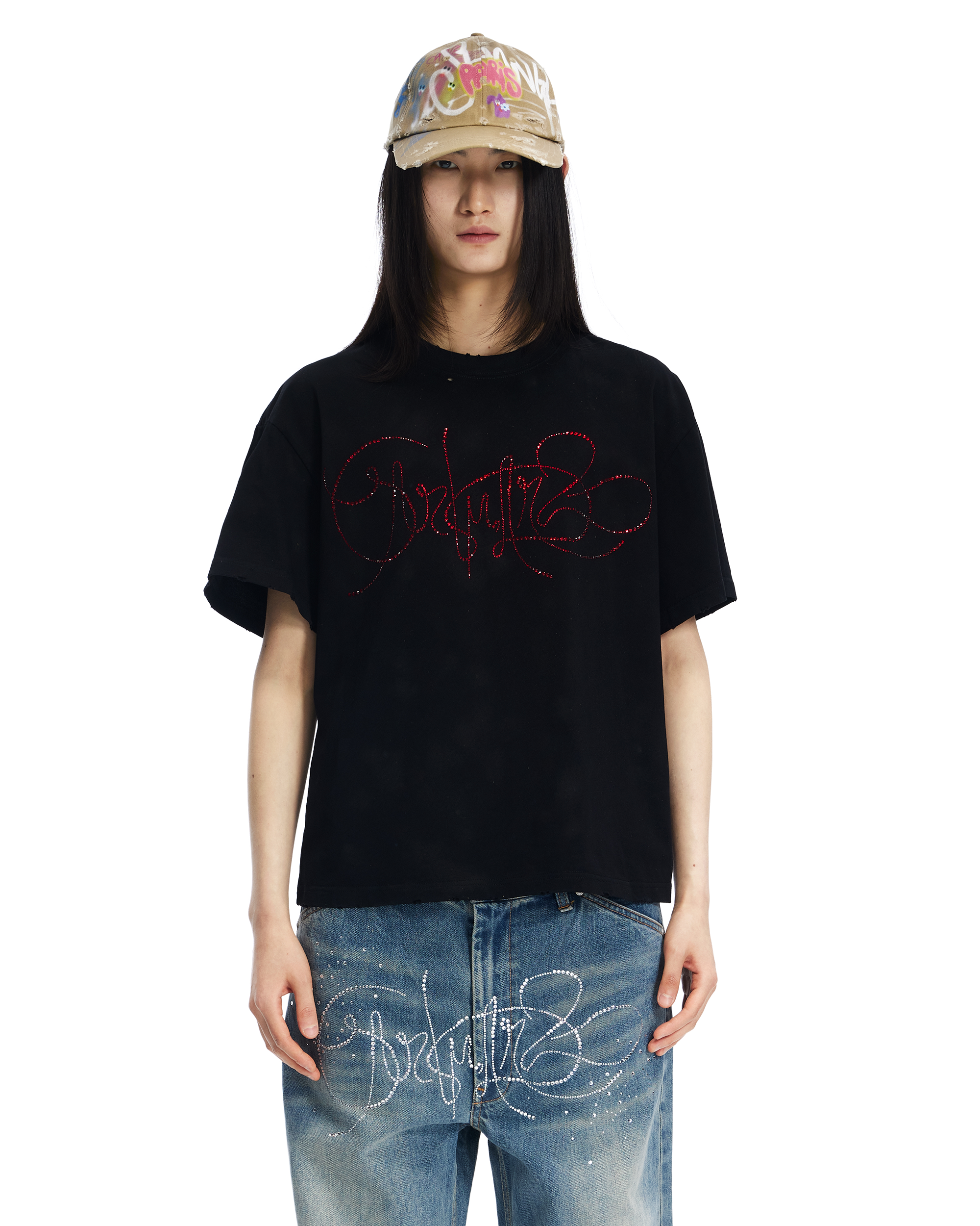 BUMPY RHINESTONE LOGO OVERSIZED T-SHIRT