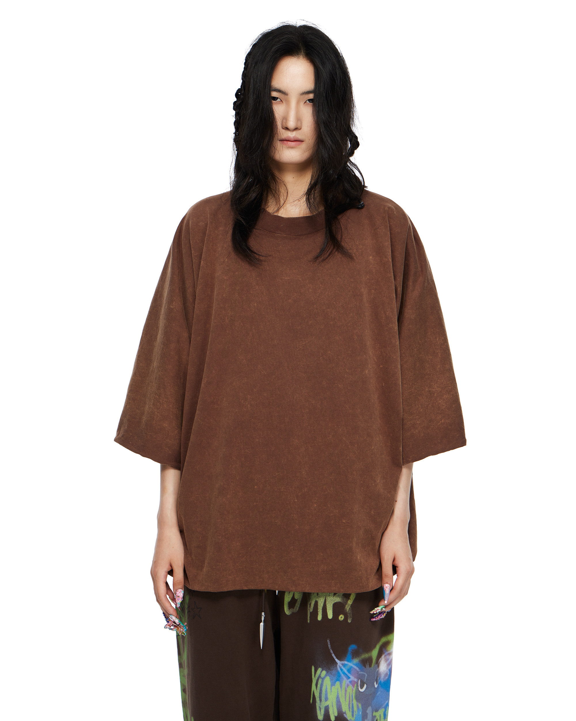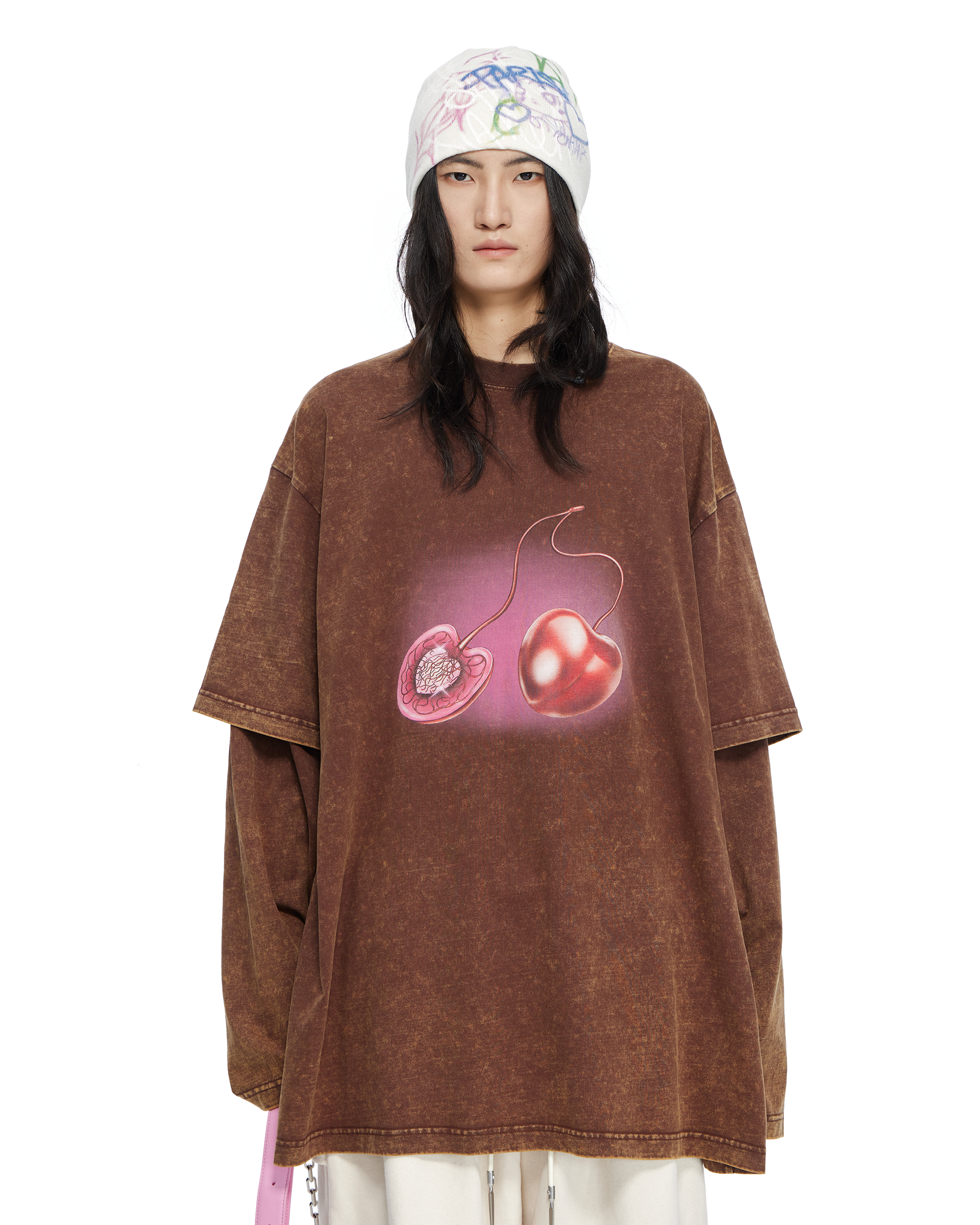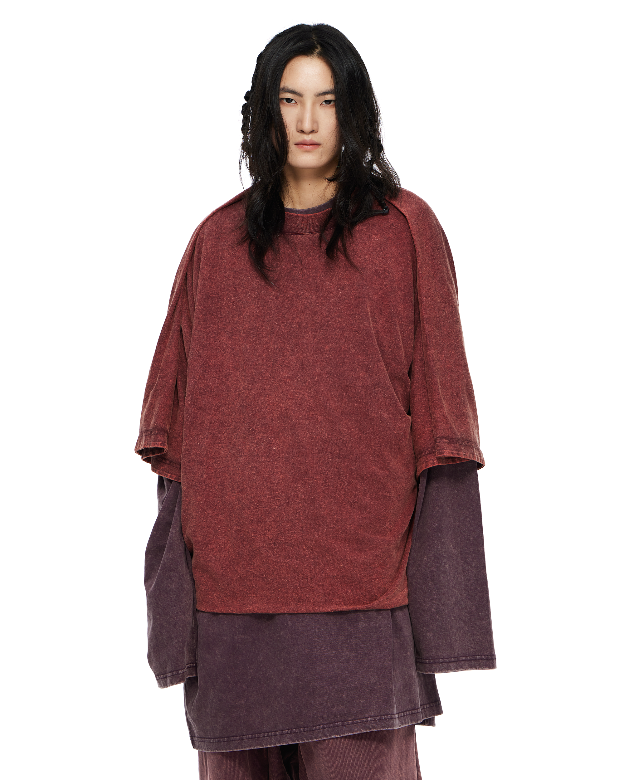 DOUBLE-LAYER SPLICED WASHED T-SHIRT