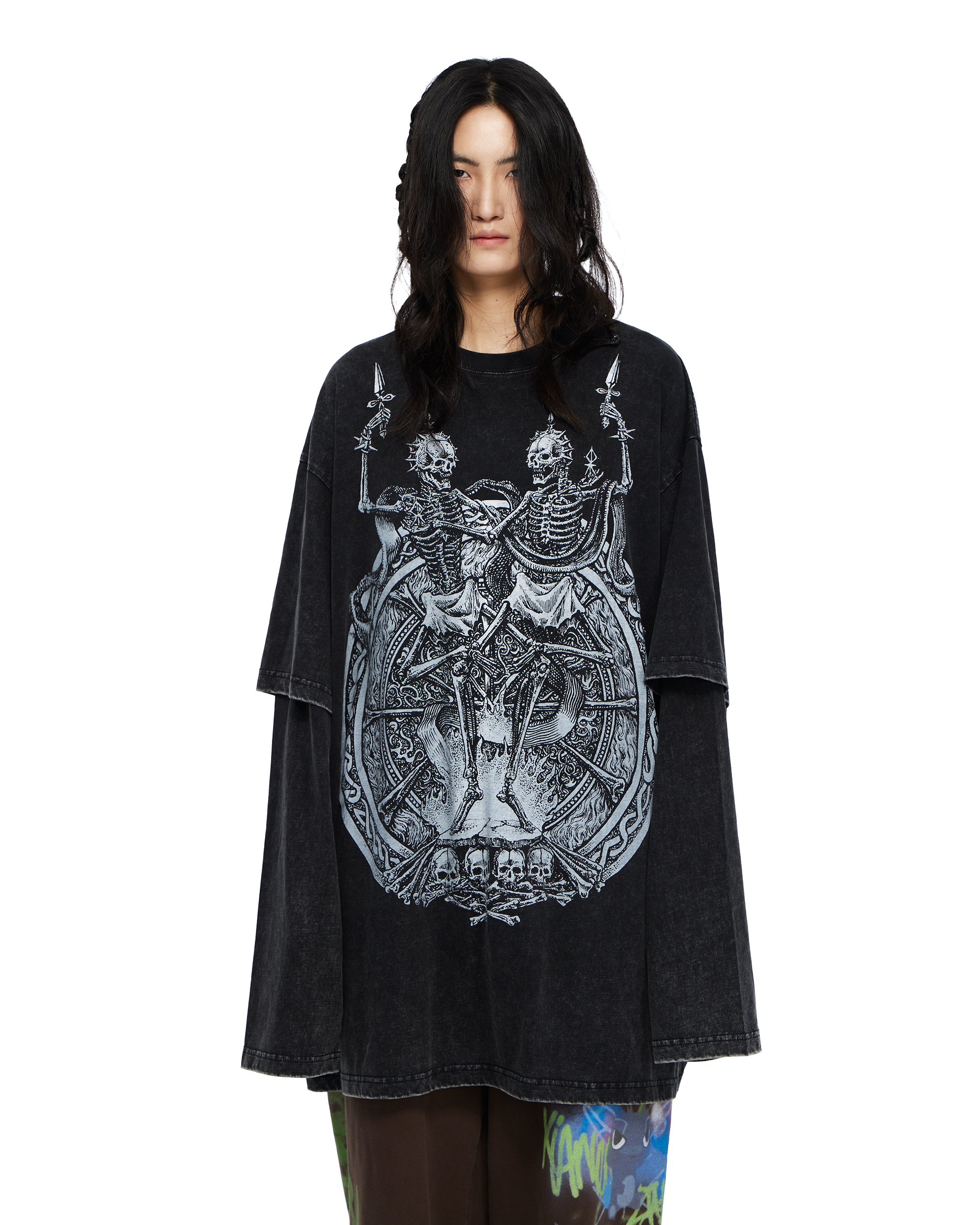 BUMPY GRAFFITI LAYERED LOOK LONG-SLEEVE TEE