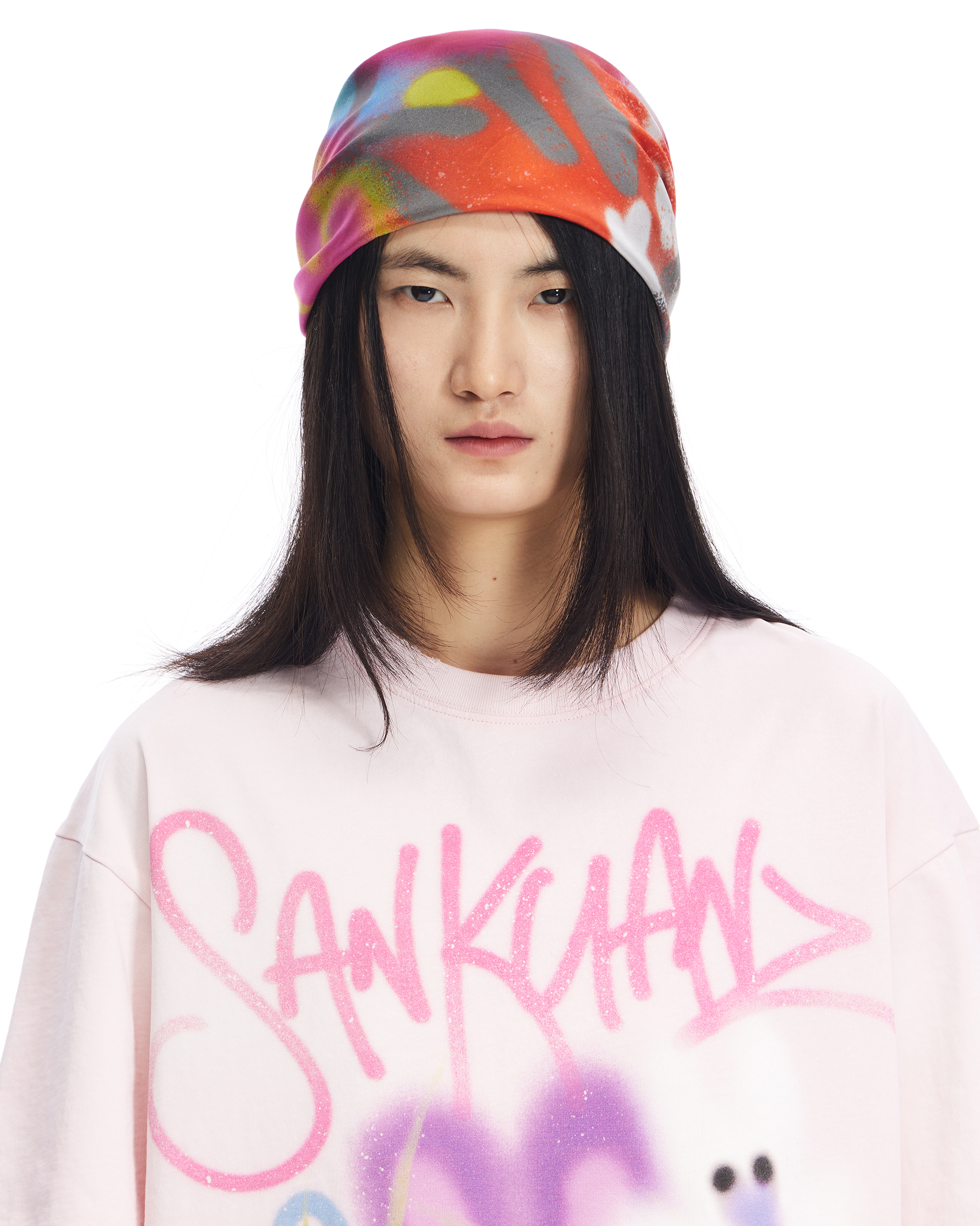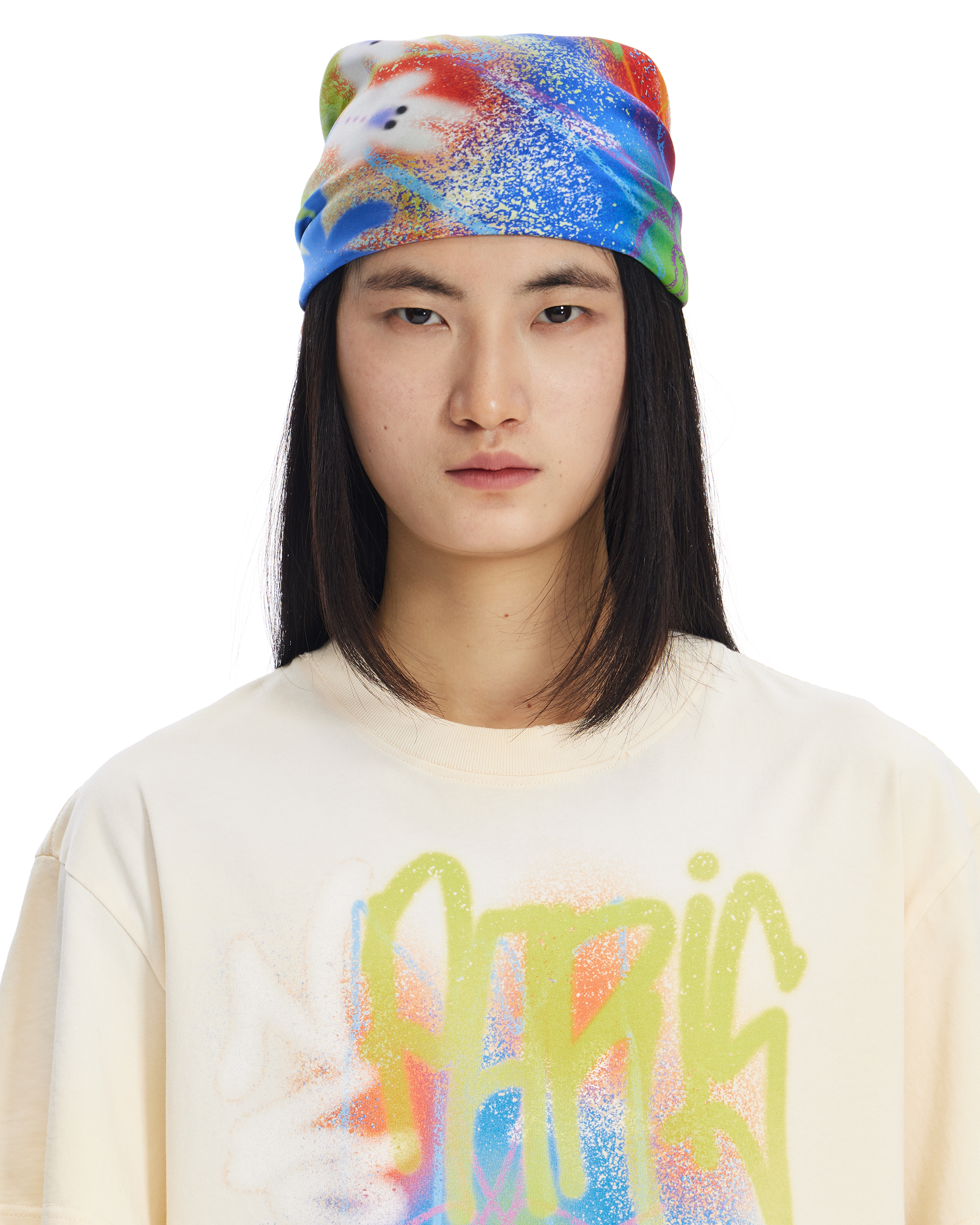 • BUMPY GRAFFITI PRINT KNIT BEANIE
